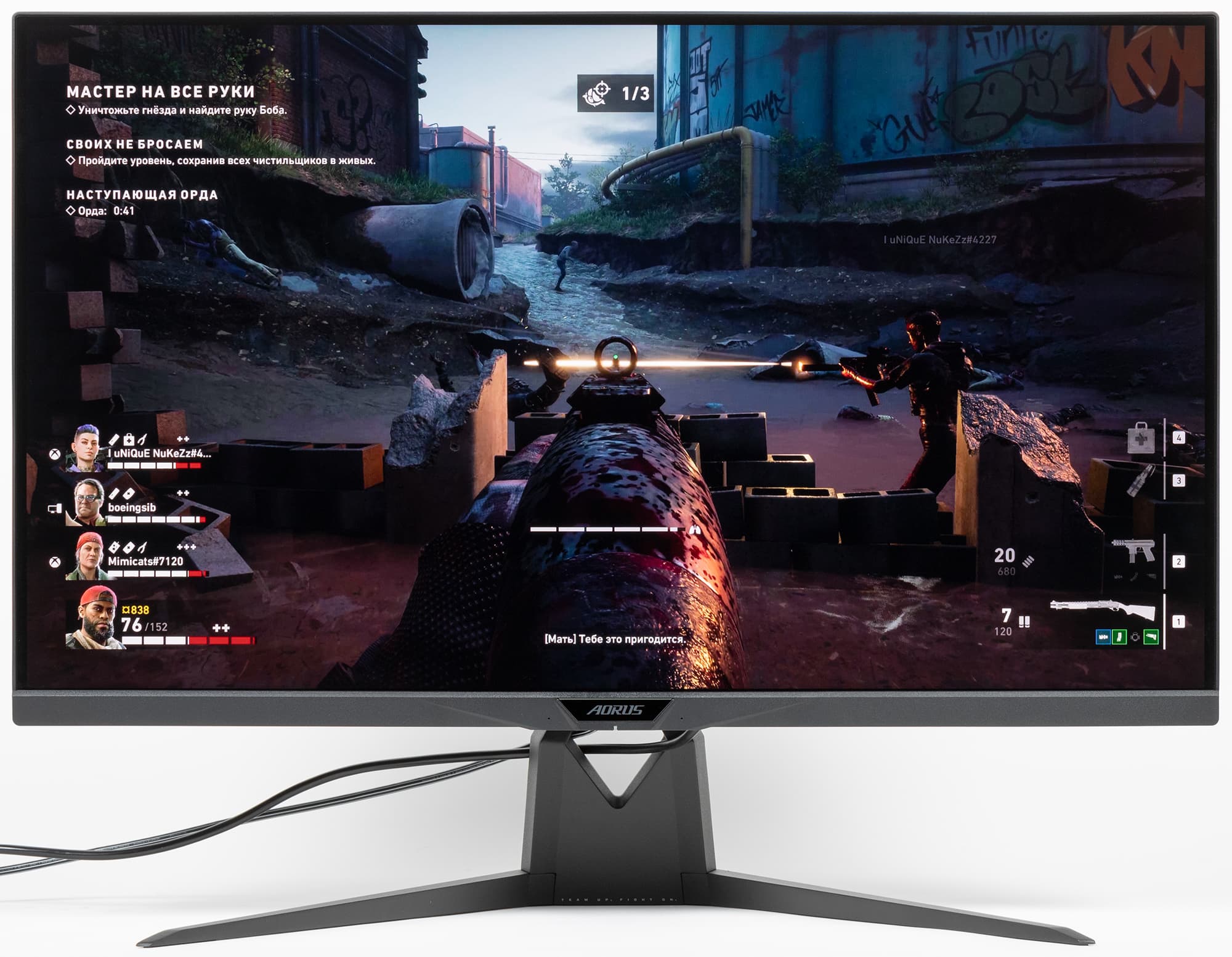 Aorus FI32Q X компании Gigabyte — это игровой монитор высшего класса. К его особенностям относятся большой экран с разрешением QHD и типичный для игрового монитора внешний вид. Есть поддержка частоты обновления до 270 Гц включительно, AMD FreeSync Premium Pro и Nvidia G-Sync Compatible, а также хорошая реализация HDR. Традиционно для игровых мониторов Gigabyte, присутствует набор игровых функций, часть из которых работает совместно со специальным ПО. Монитор отлично подходит для любых игр и, например, для просмотра кино и работы с большим количеством информации. Также не исключено его применение для работ, требующих высокой стабильности цветов по площади и при взгляде под углом.