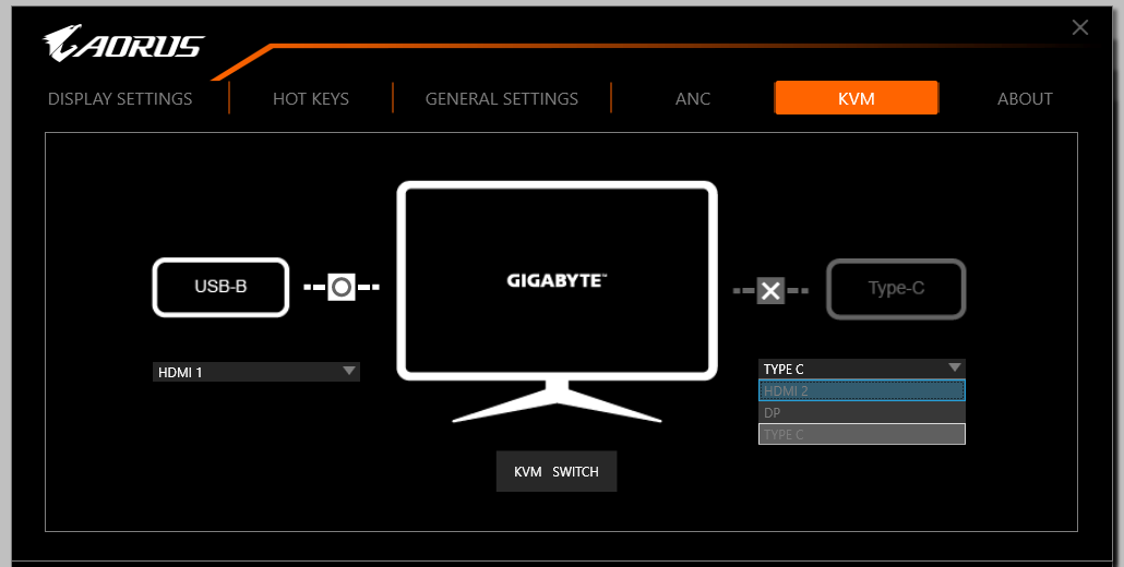 Есть встроенный концентратор USB (3.0) на два порта. Выходы USB поддерживают режим быстрой зарядки (BC 1.2). В наличие также не часто встречающаяся в мониторах функция KVM — к монитору по USB можно подключить клавиатуру и мышь, чтобы затем их использовать с двумя источниками, например, с ПК и ноутбуком, или с ПК и планшетом. При этом один из источников должен быть подключен по USB-C (ввод видеосигнала по этому же интерфейсу, или по DisplayPort, или по HDMI 2), а второй — по USB через разъем USB-B (ввод видеосигнала или по DisplayPort, или по HDMI 1, или по HDMI 2). Отдельной механической кнопки для переключения между источниками нет, ее заменяют пункт в меню монитора и кнопка в приложении OSD Sidekick, также эту функцию можно назначить на отклонение джойстика. Еще как KVM-переключатель работает и просто выбор входа. Переключаются не только клавиатура и мышь, но и, например, флешка, подключенная к монитору через разъем USB-А.