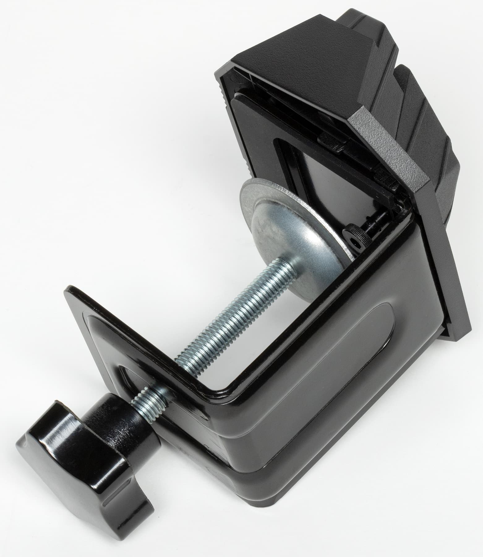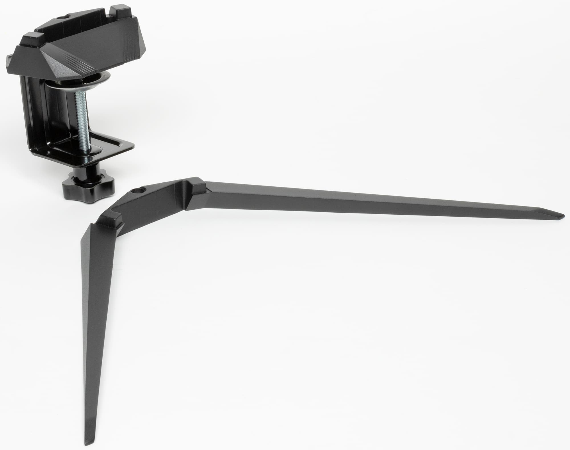 Для штатной подставки производитель предусмотрел два варианта основания — обычное в виде V-образной опоры и зажим на край стола: