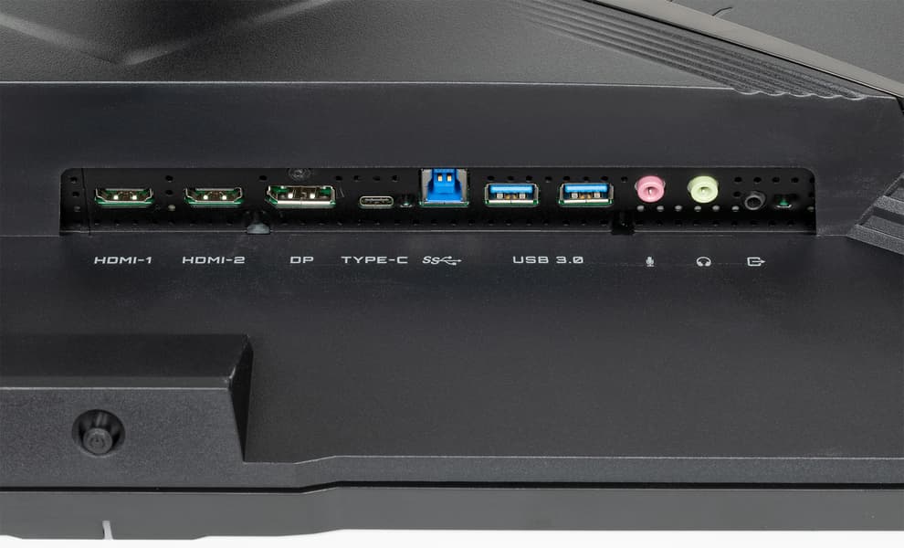 Монитор оснащен тремя цифровыми входами в полноразмерном варианте — DisplayPort и пара HDMI, — дополненные входом USB-C. Выбор входа осуществляется в основном меню установок или в меню быстрого доступа (если оно так настроено). Есть отключаемая функция автоматического поиска сигнала на входах. По идее, цифровые аудиосигналы, передаваемые перечисленные выше входы, после преобразования в аналоговый вид должны выводиться на линейный аудиовыход (совмещен с цифровым оптическим аудиовыходом) и на выход на наушники, но что-то пошло не так, и вывода звука в таком варианте мы не получили.