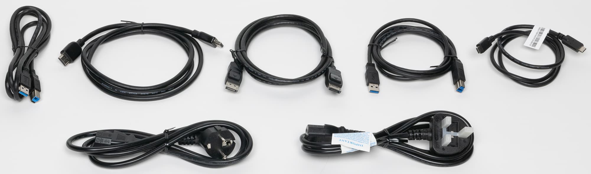 К монитору прилагается неплохой комплект кабелей (но не очень длинных) черного цвета.