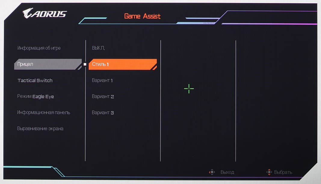 Из дополнительных возможностей в наборе Game Assist (Игровой ассистент) присутствуют несколько «геймерских» функции: таймер, пользовательский счетчик, вывод частоты кадров, перекрестия прицела в центре экрана и меток для выравнивания установленных встык мониторов.
