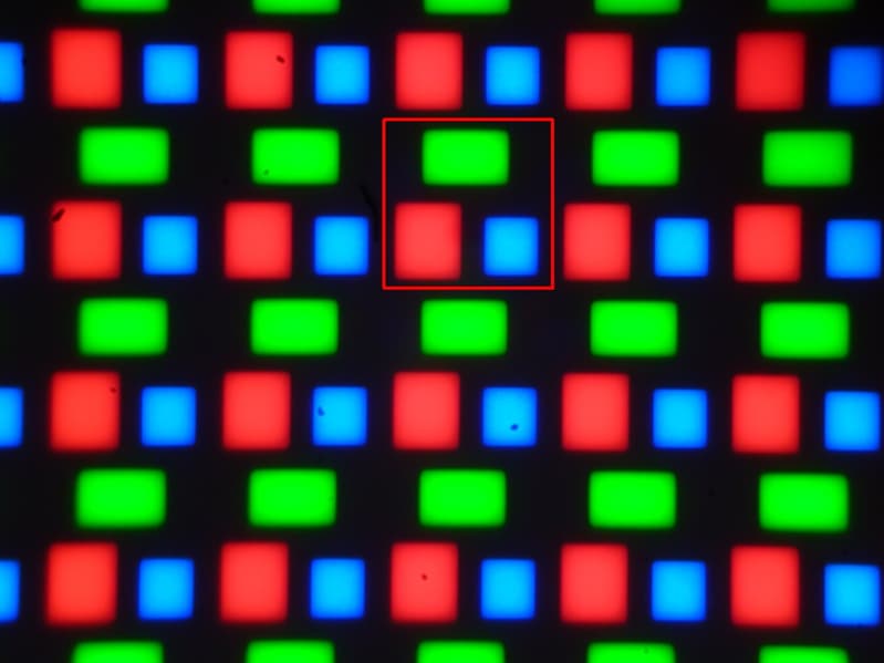 Красный квадрат очерчивает один пиксель.