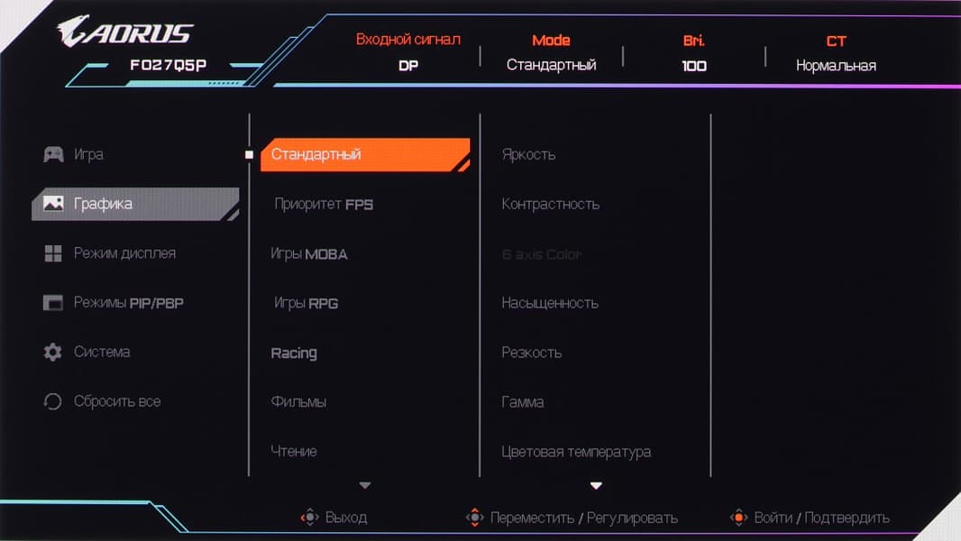 Aorus FO27Q5P — это игровой монитор очень высокого класса. Технология OLED в ее разновидности QD-OLED, с помощью которой формируется изображение на экране данного монитора, позволяет получить картинку высочайшего качества с настоящим черным цветом, насыщенными яркими цветами, отличными углами обзора и без каких-либо артефактов в динамике. У монитора большой экран с высоким разрешением, есть поддержка частоты обновления до 500 Гц включительно, AMD FreeSync Premium Pro и Nvidia G-Sync Compatible, а также отличная реализация HDR. Традиционно для игровых мониторов Gigabyte, присутствует набор игровых функций, часть из которых работает совместно со специальным ПО. Дополнительно монитор выделяет статичная или динамичная многоцветная многозонная подсветка на задней панели. Монитор хорош для любых игр и, например, для просмотра кино.