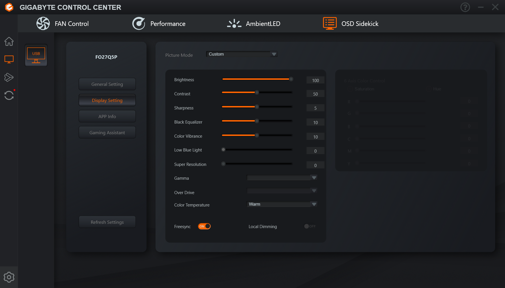 - Приложение Gigabyte Control Center для настройки монитора
