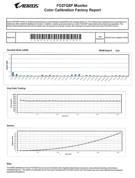 К монитору (к каждому конкретному экземпляру) прилагается отчет о качестве цветового баланса:
