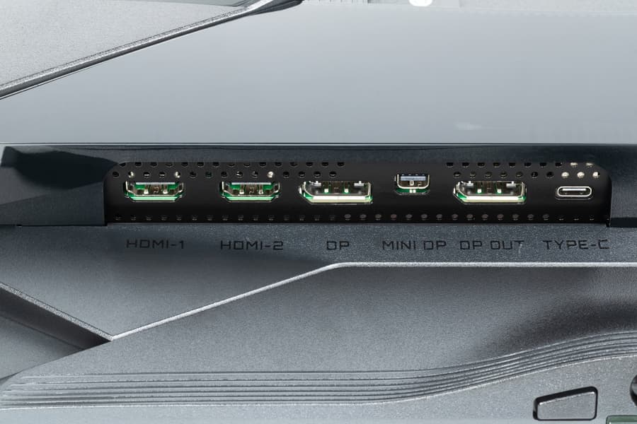 Монитор оснащен тремя цифровыми входами в полноразмерном варианте — DisplayPort и парой HDMI. Они дополнены входами Mini-DisplayPort и USB-C. Выбор входа осуществляется в основном меню установок или в меню быстрого доступа (если оно настроено на одно из отклонений джойстика). Есть отключаемая функция автоматического поиска сигнала на входах. Заявлена поддержка Daisy Chain — последовательного соединения мониторов через DisplayPort, что обеспечивается с помощью отдельного выхода DisplayPort.