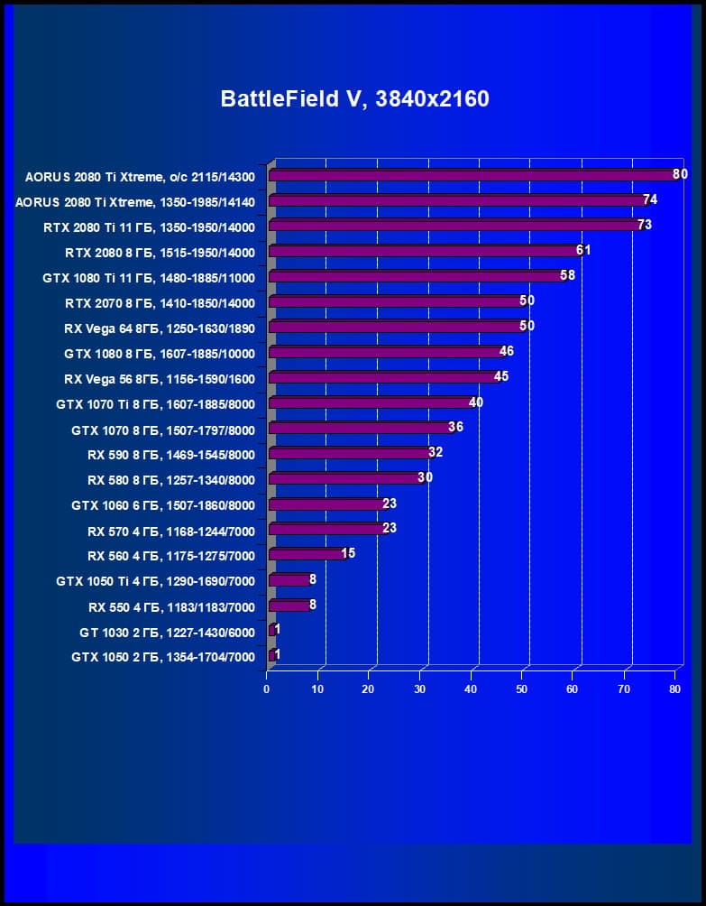 Возвращаясь к результатам RTX 2080 Ti, отметим, что соперники логично отстают.