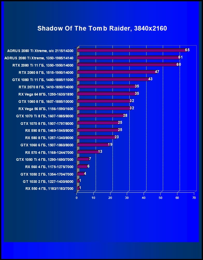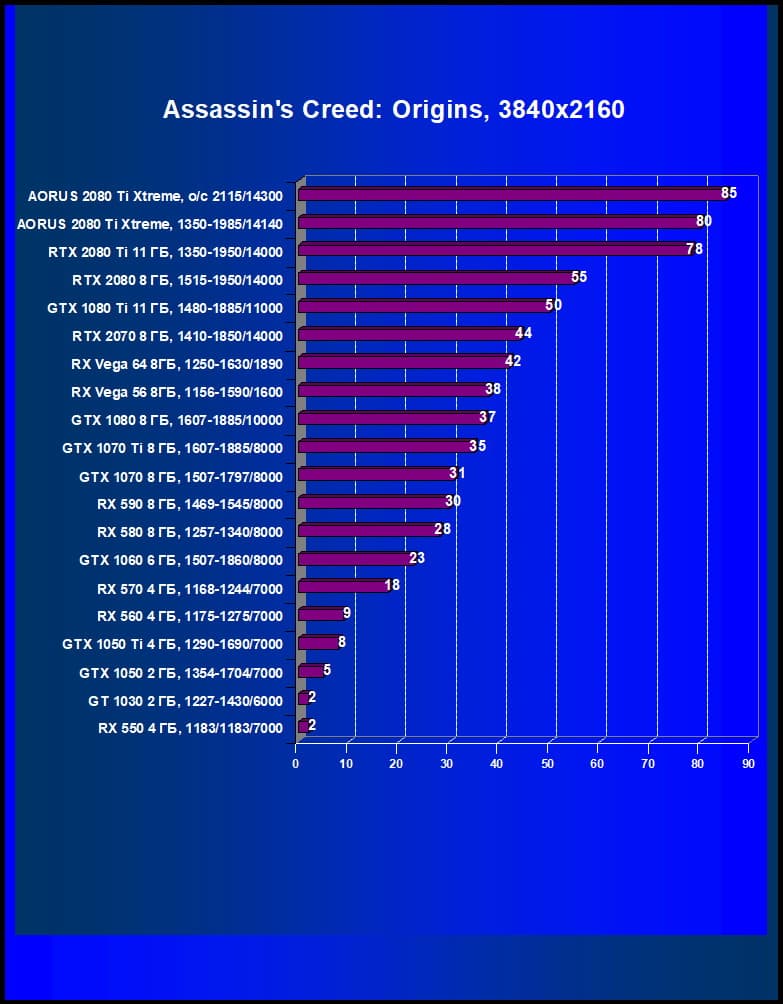 | 11 | GTX 1080 Ti 11 ГБ, 1480—1885/11000 | 713 | 3709 | 52 000 |