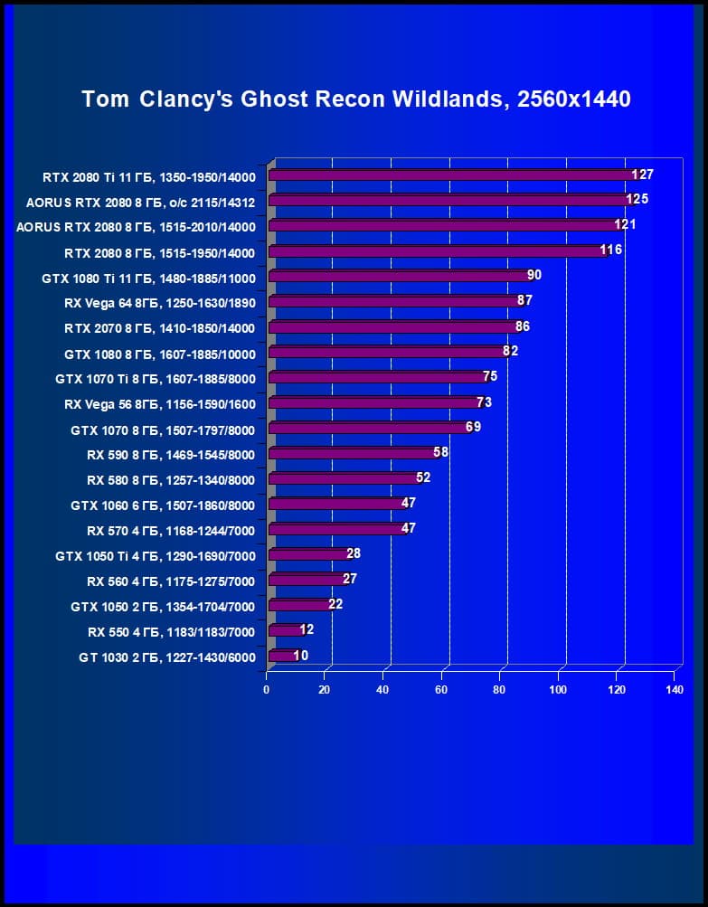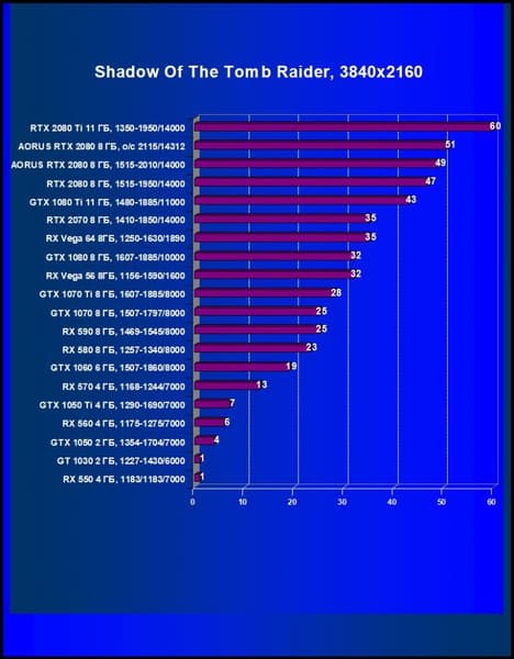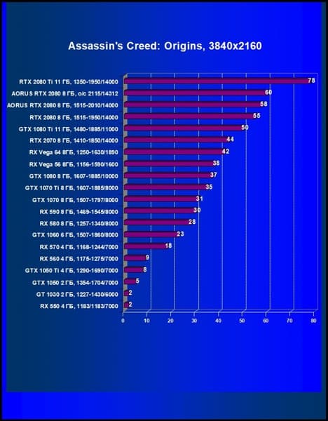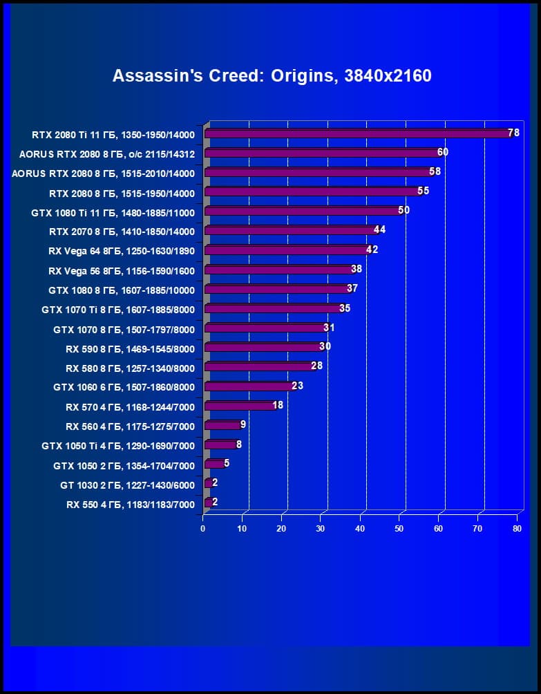 RTX 2080 и, в частности, эта карта Aorus прекрасно подойдут, если вы хотите играть при максимальном качестве графики во всех играх в разрешении до 2560×1440 включительно. При тех же максимальных настройках графики в разрешении 4К этот ускоритель также выдаст хорошую производительность в большинстве игр. Следом идет GTX 1080 Ti, а RX Vega 64 — на третьем месте.
