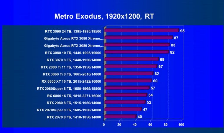 | 13 | Gigabyte Aorus RTX 3080 Xtreme, 1440—2025/19000 | 151 | 1807 | 120 000 |