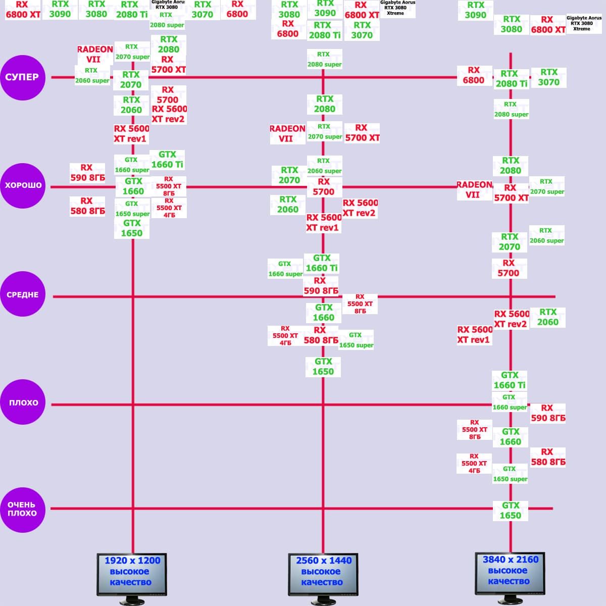 | 08 | RX 6800 XT 16 ГБ, 2015—2401/16000 | 140 | 18 | 77 000 |