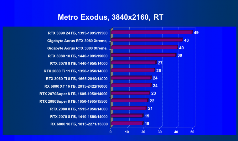 В заключение хочется сказать: мы надеемся, что выйдет еще немало игр с поддержкой RT+DLSS, в которых GeForce RTX 3080 проявит себя в качестве лидера игрового 3D (GeForce RTX 3090 из-за его цены мы выносим за скобки), ведь в целом этот ускоритель предназначен для тех энтузиастов ПК-игр, которые планируют играть при использовании максимальных настроек качества и с RT (с или без DLSS) в разрешениях до 4К включительно.