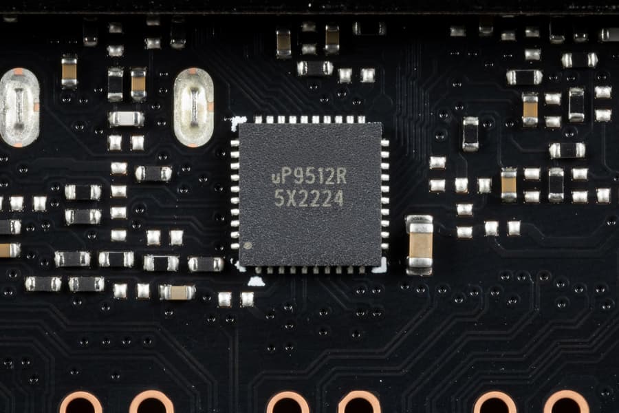 8 фазами питания ядра управляет ШИМ-контроллер uP9512R (uPI Semiconductor). Он рассчитан максимум на 12 фаз.