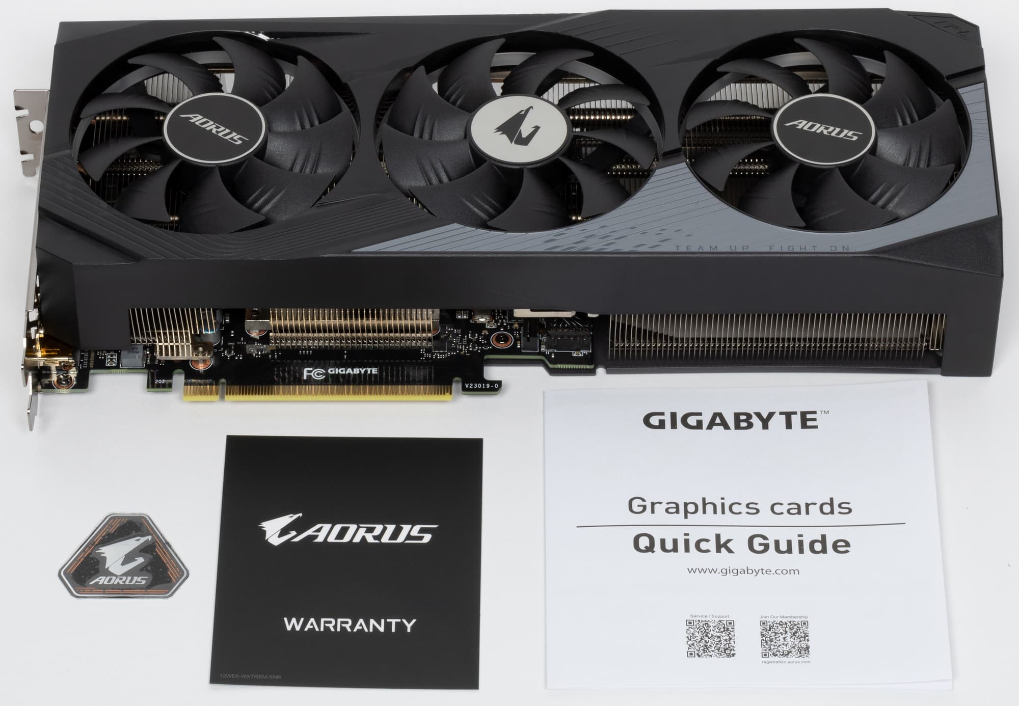 В комплекте поставки кроме карты есть наклейка Aorus на компьютер. 4-летнюю гарантию можно получить, если пройти процедуру онлайн-регистрации продукта.