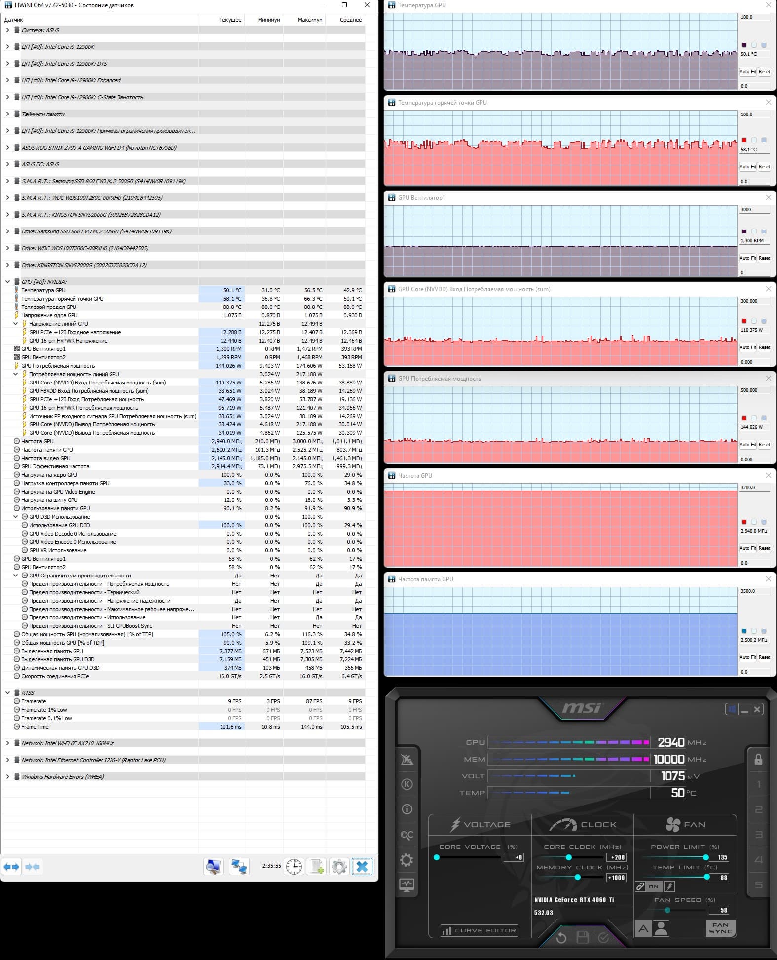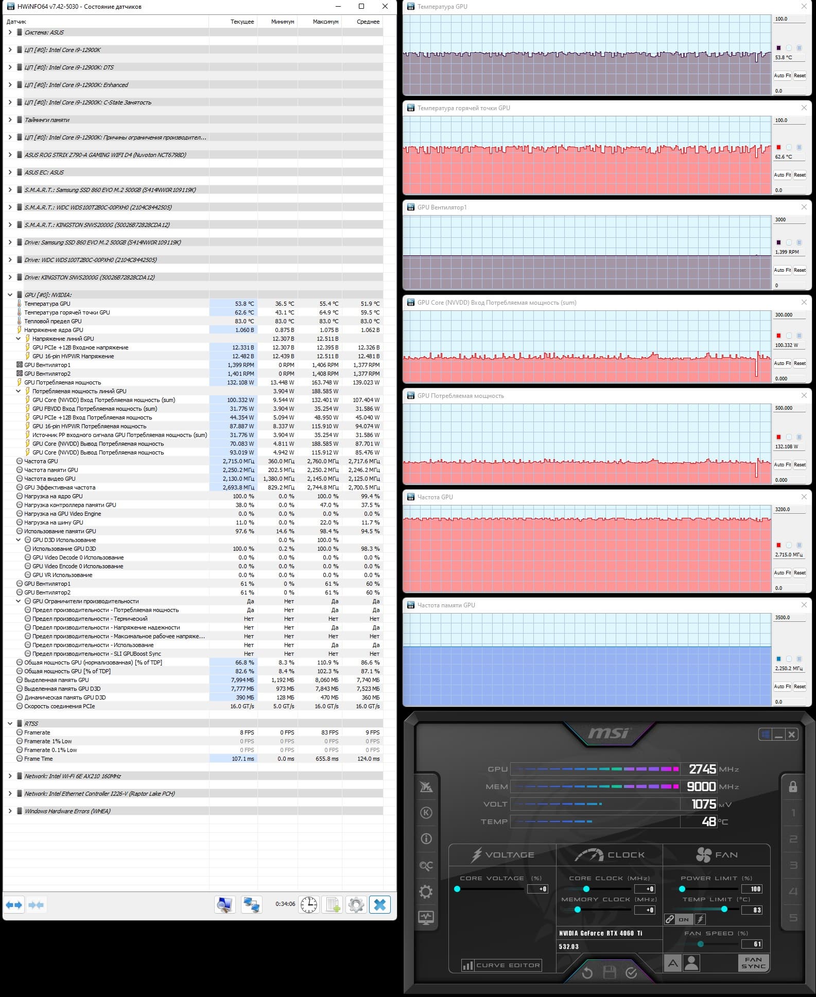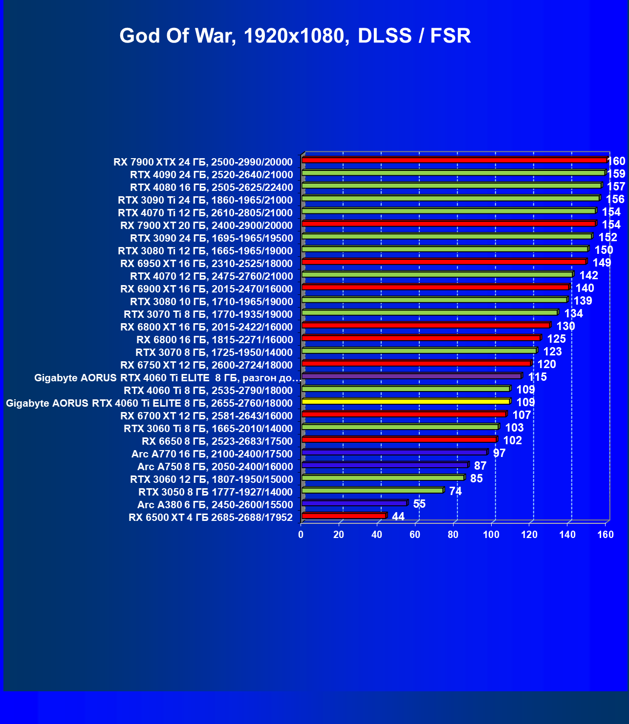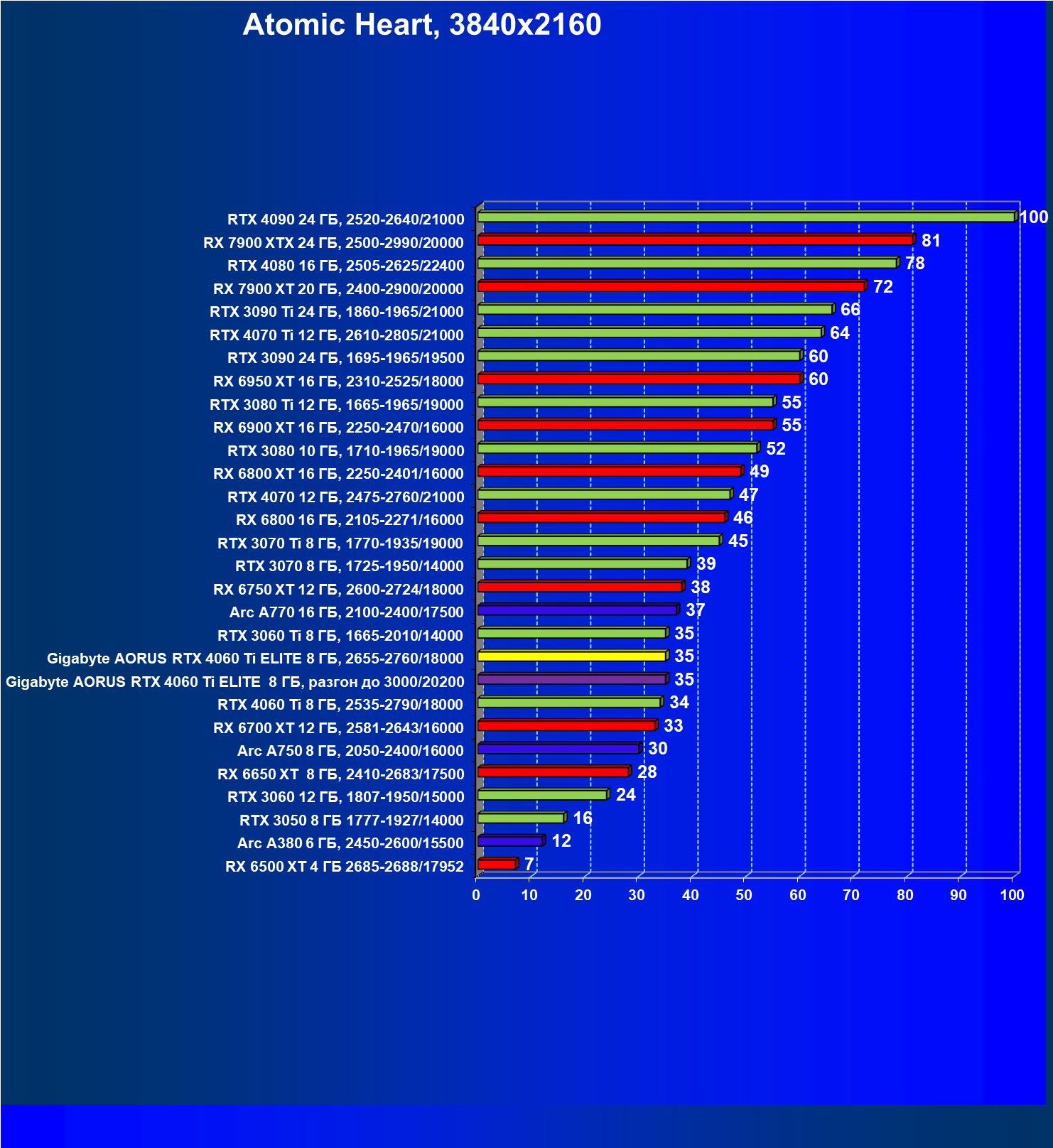 | 15 | Gigabyte Aorus RTX 4060 Ti Elite 8 ГБ, разгон до 3000/20200 | 563 | 117 | 48 000 |