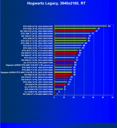 При включении трассировки лучей карты Radeon даже с использованием масштабирования FSR демонстрируют меньшую производительность. К тому же GeForce RTX 4060 Ti поддерживает DLSS 3.0, что позволило карте Gigabyte опередить даже Radeon RX 6800 и GeForce RTX 3070. Однако на сегодня игр с поддержкой DLSS 3.0 совсем мало.