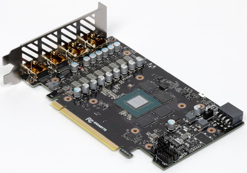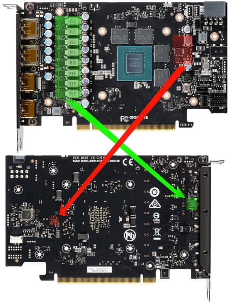 Мы сравниваем эту карту с моделью Palit на базе того же GPU. Как мы видим, карты во многом схожи, но PCB у Gigabyte немного длиннее.