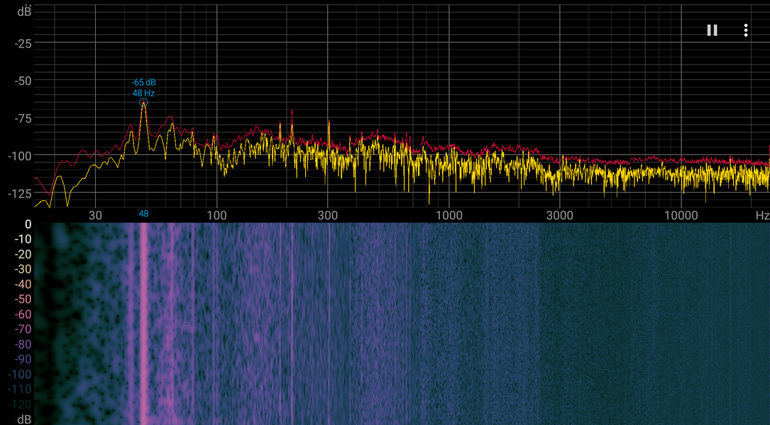 В режиме максимальной нагрузки в 3D температура достигала 54/65 °C (ядро/hot spot). Вентиляторы при этом раскручивались до 1405 оборотов в минуту, шум вырастал до 28,2 дБА: это тихо. Спектрограмма шума не выявила проблемных моментов. Аудиозапись шума — здесь.