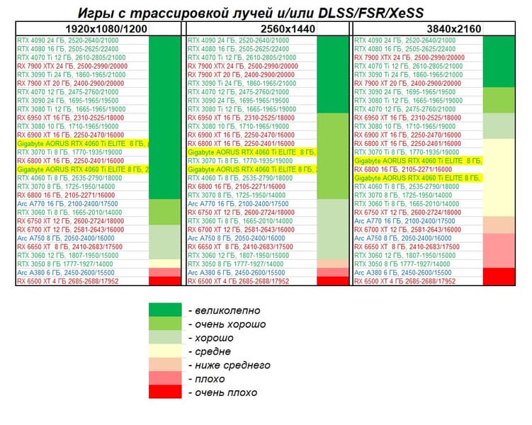 - Вариант рейтинга iXBT.com с включением RT/DLSS/FSR/XeSS