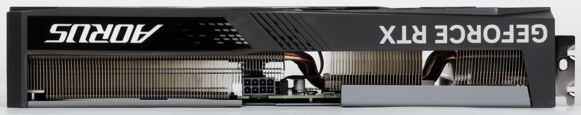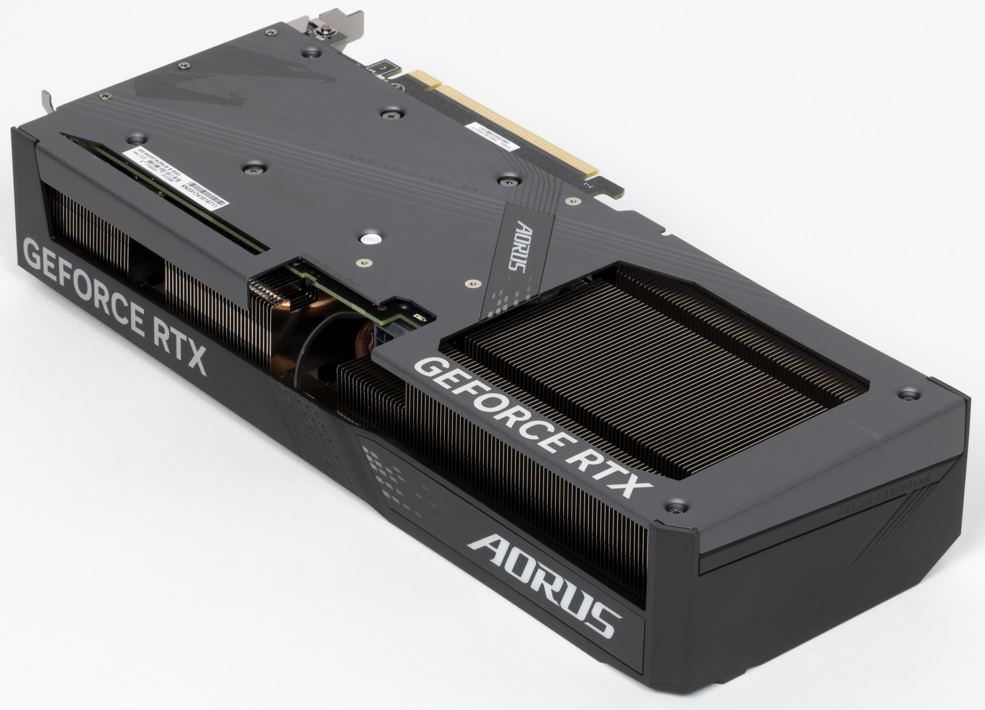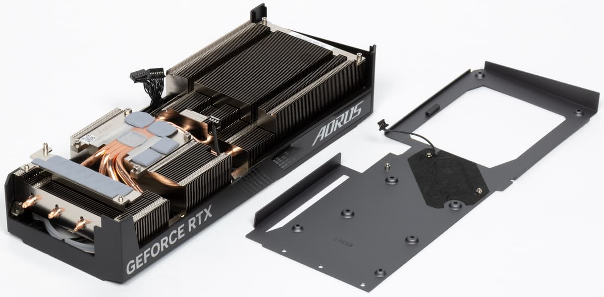 Задняя пластина не участвует в охлаждении оборотной стороны платы, а служит просто элементом защиты и усиления жесткости PCB, а также несет на себе подсвечиваемый логотип Aorus.