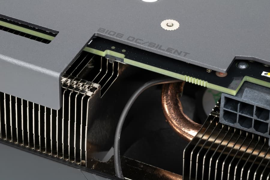 Карта имеет два режима работы, они заложены в двух вариантах BIOS, которые переключаются с помощью переключателя на верхнем торце карты: OC (производительный) и Silent (тихая работа системы охлаждения). Разница между режимами в основном состоит в настройках работы вентиляторов.