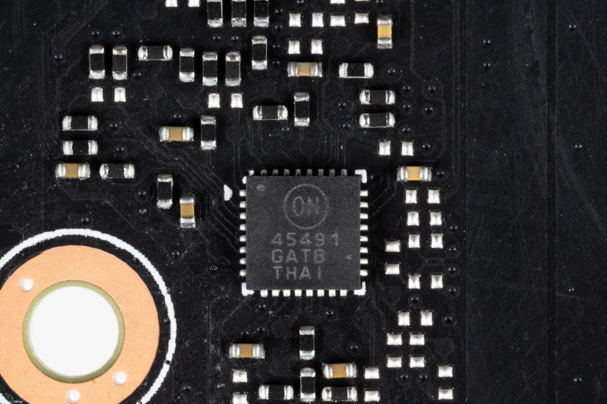 На тыльной стороне платы имеется контроллер NCP45491 (On Semi), который отвечает за мониторинг карты (отслеживание напряжений и температуры).