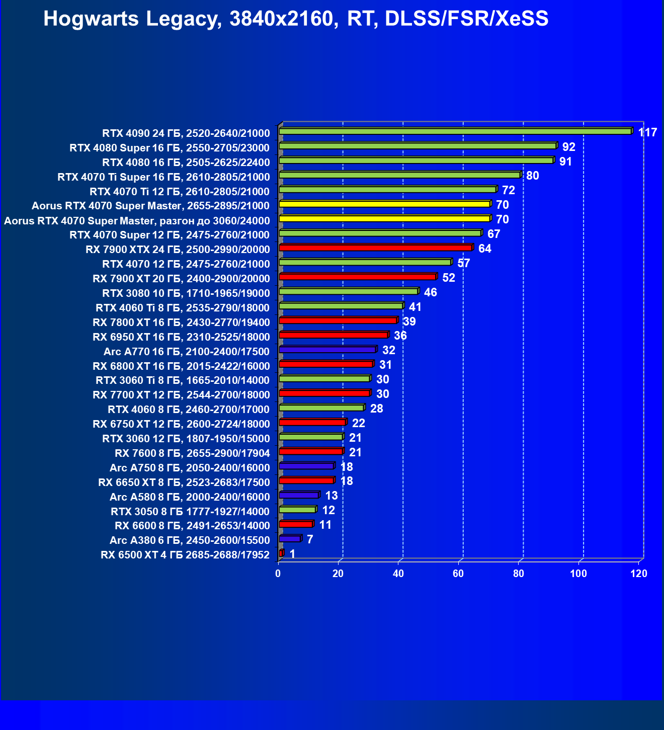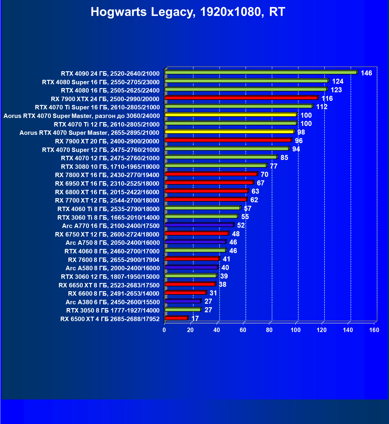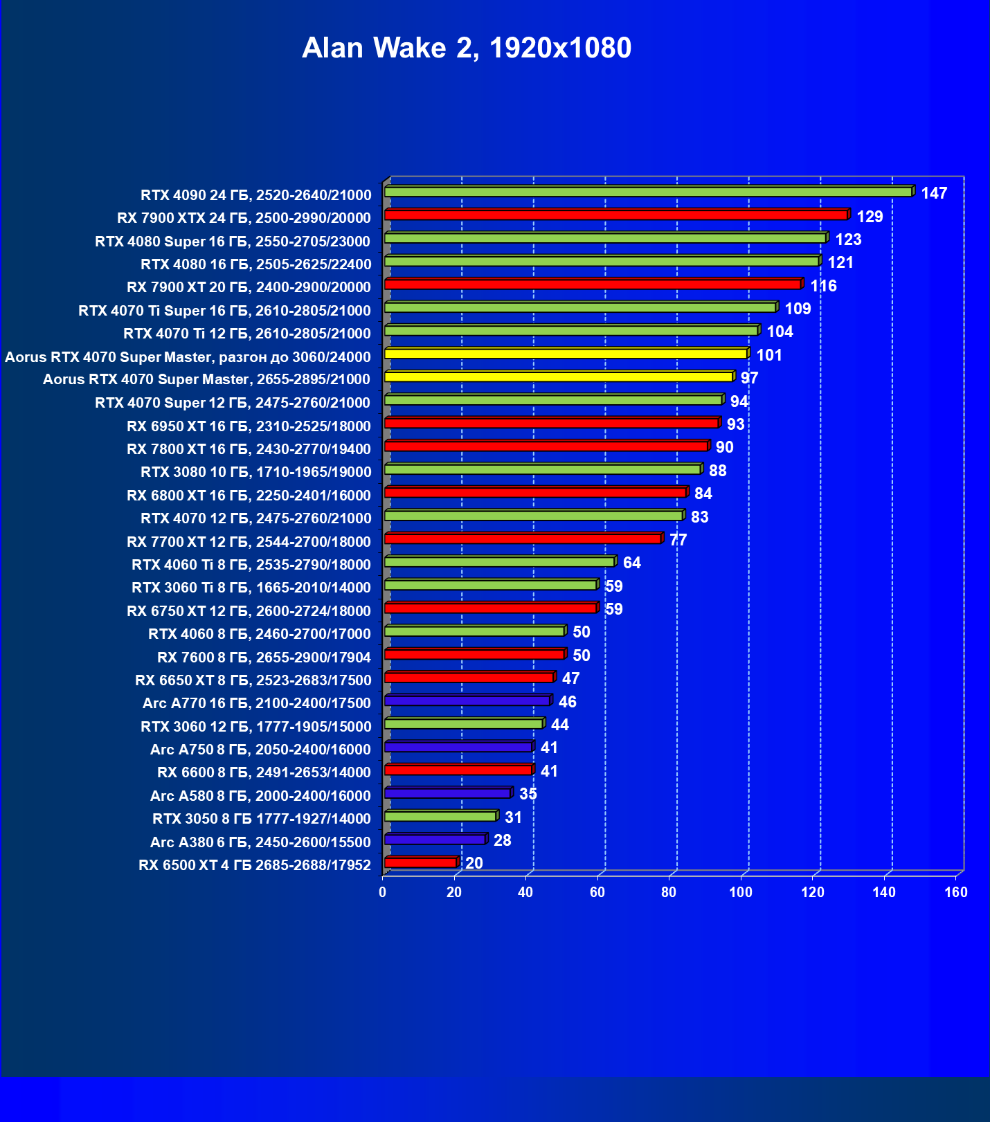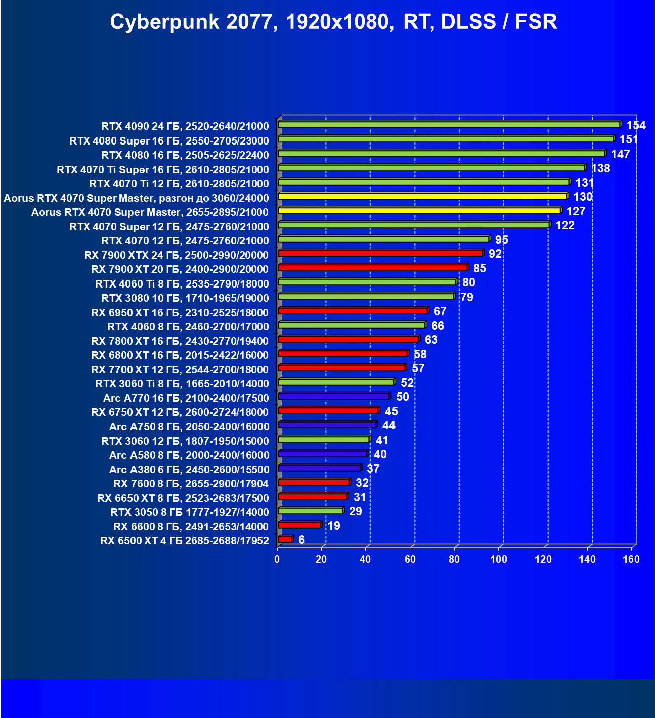 | 06 | Aorus RTX 4070 Super Master, разгон до 3060/24000 | 1792 | 219 | 82 000 |