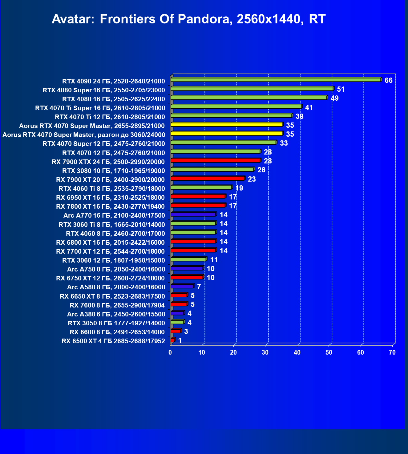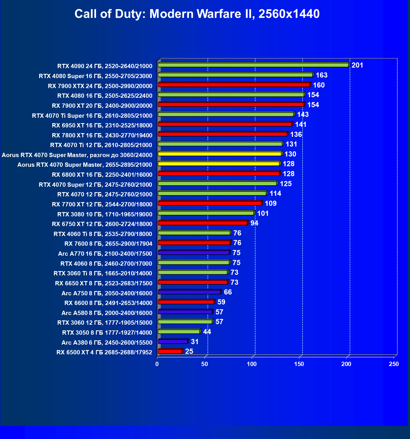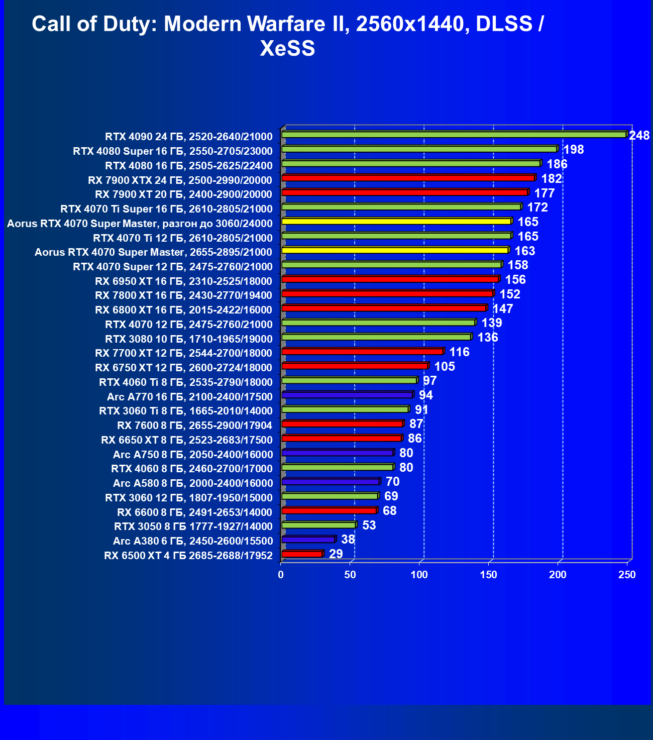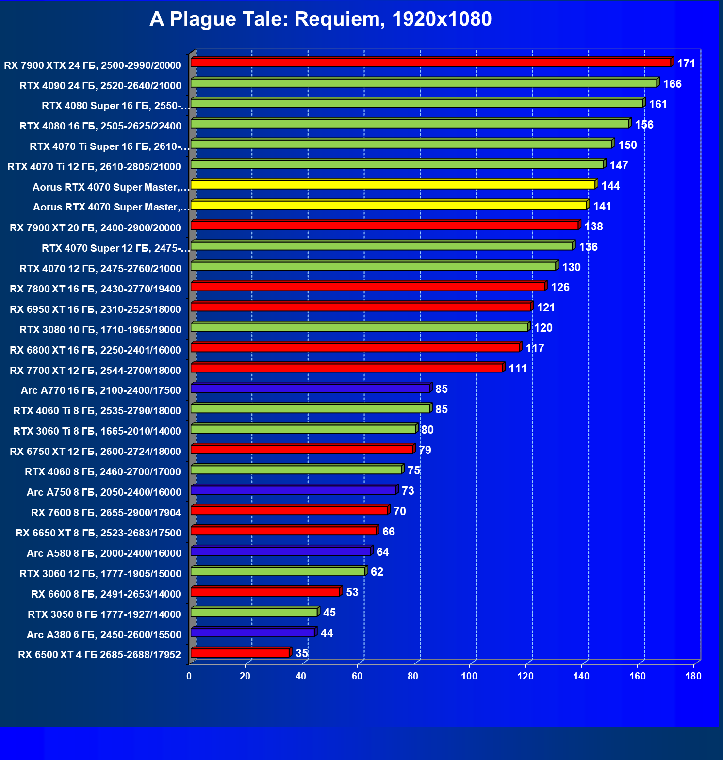 | 06 | Aorus RTX 4070 Super Master, разгон до 3060/24000 | 1792 | 219 | 82 000 |