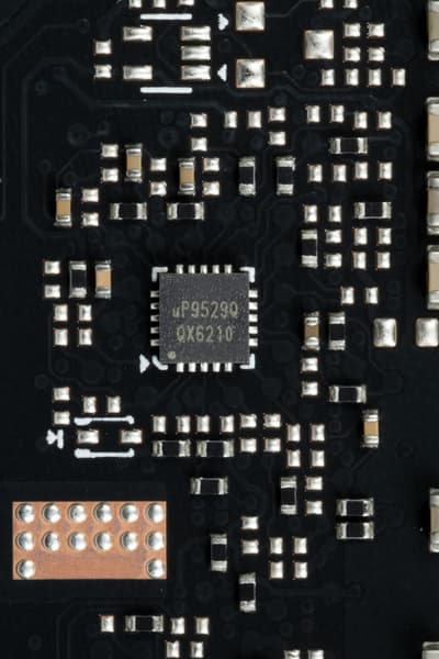 Питанием микросхем памяти управляет ШИМ-контроллер uP9529Q (uPI Semiconductor), также расположенный на оборотной стороне PCB.