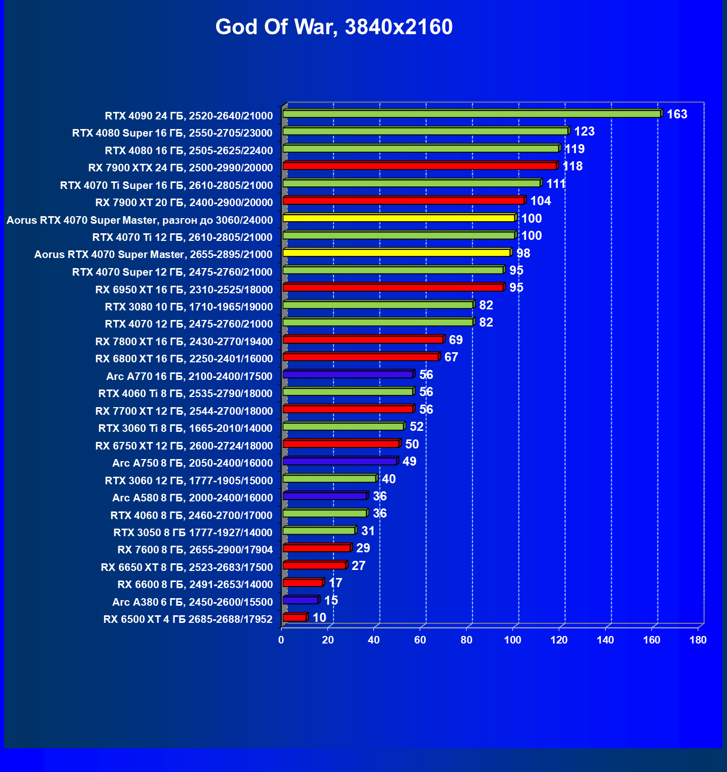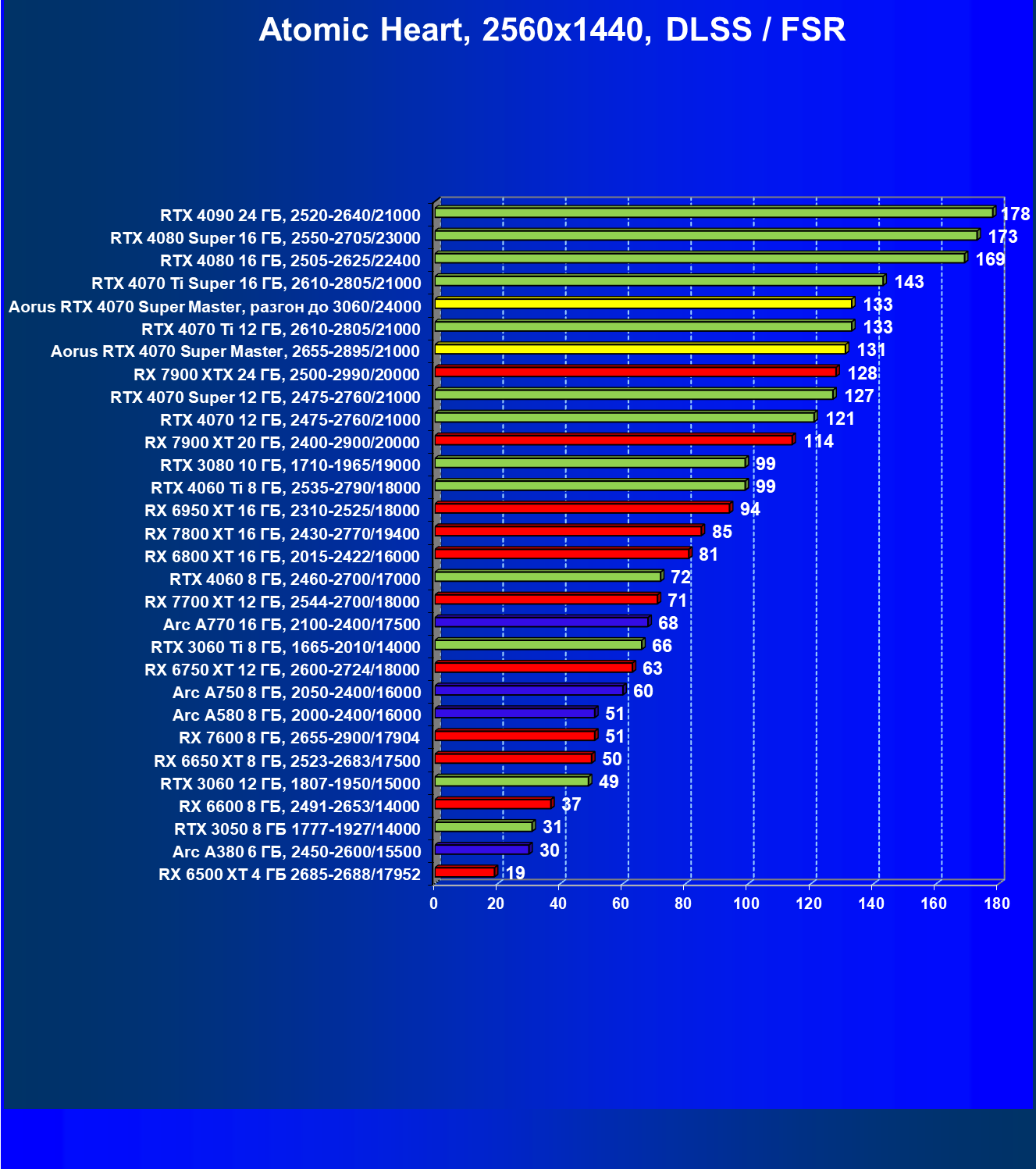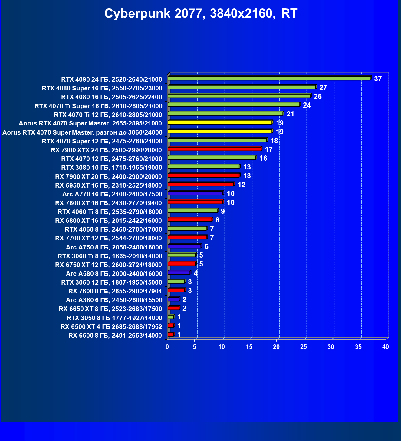 | 09 | Aorus RTX 4070 Super Master, 2655—2895/21000 | 214 | 1754 | 82 000 |