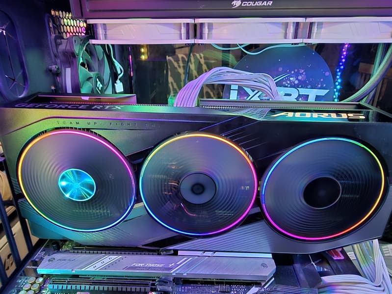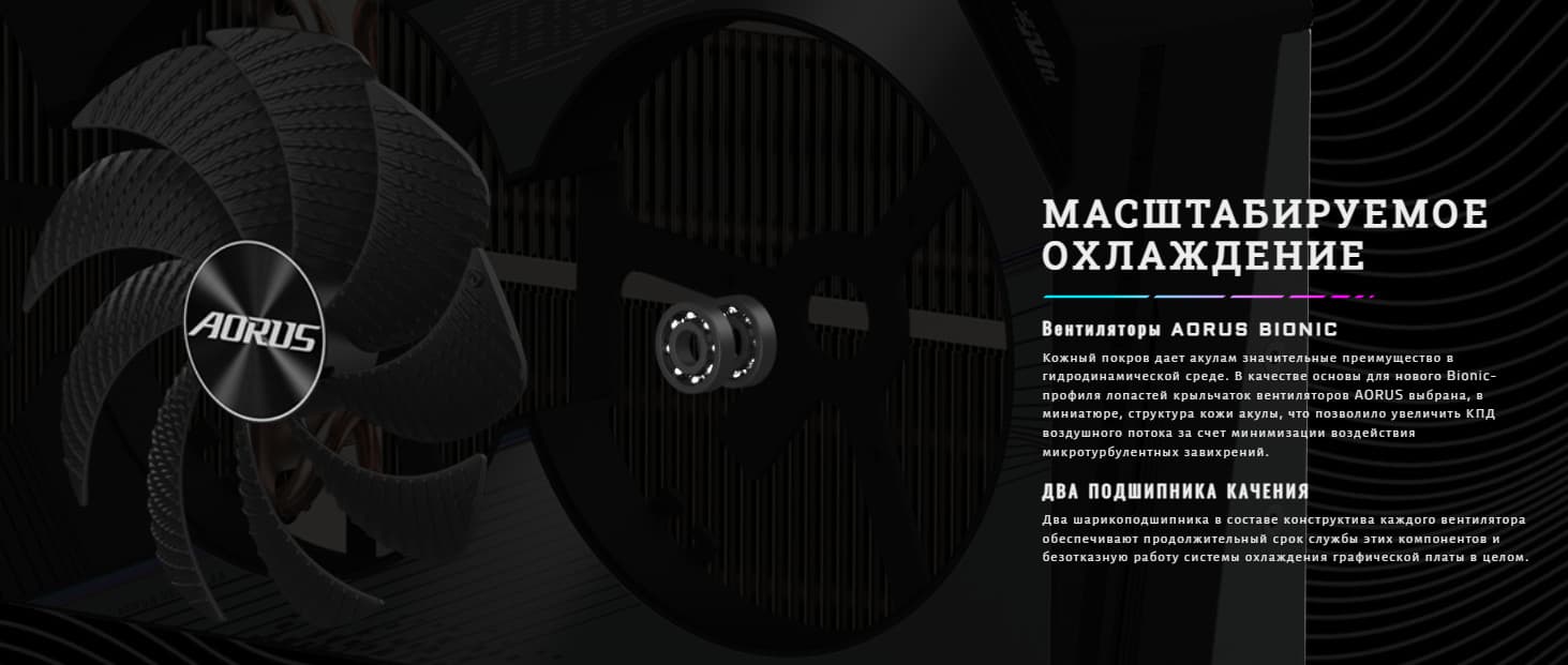 Управление традиционно осуществляется через утилиту Gigabyte Control Center. Стоит отметить интересный режим свечения на краях лопастей, когда скорость смены цветов соответствует частоте вращения вентиляторов.