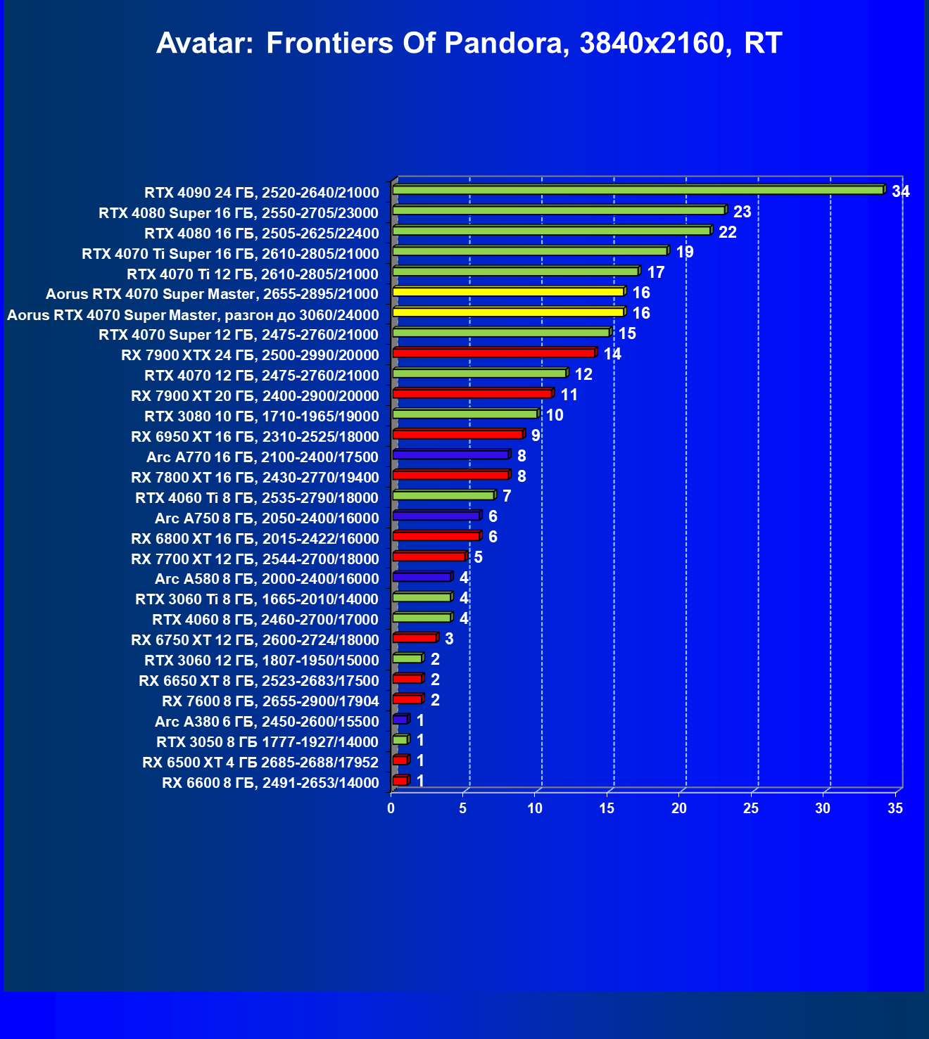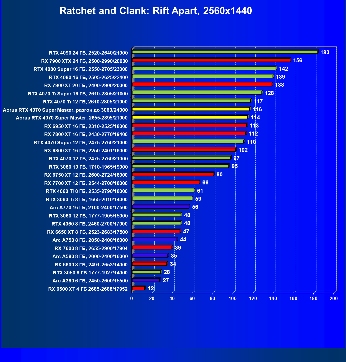 | 07 | Aorus RTX 4070 Super Master, 2655—2895/21000 | 1754 | 214 | 82 000 |