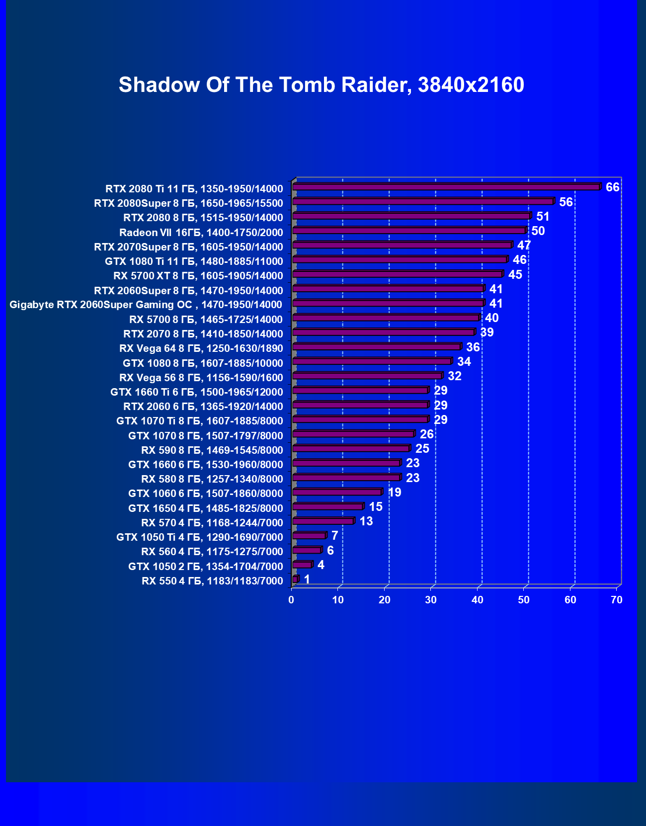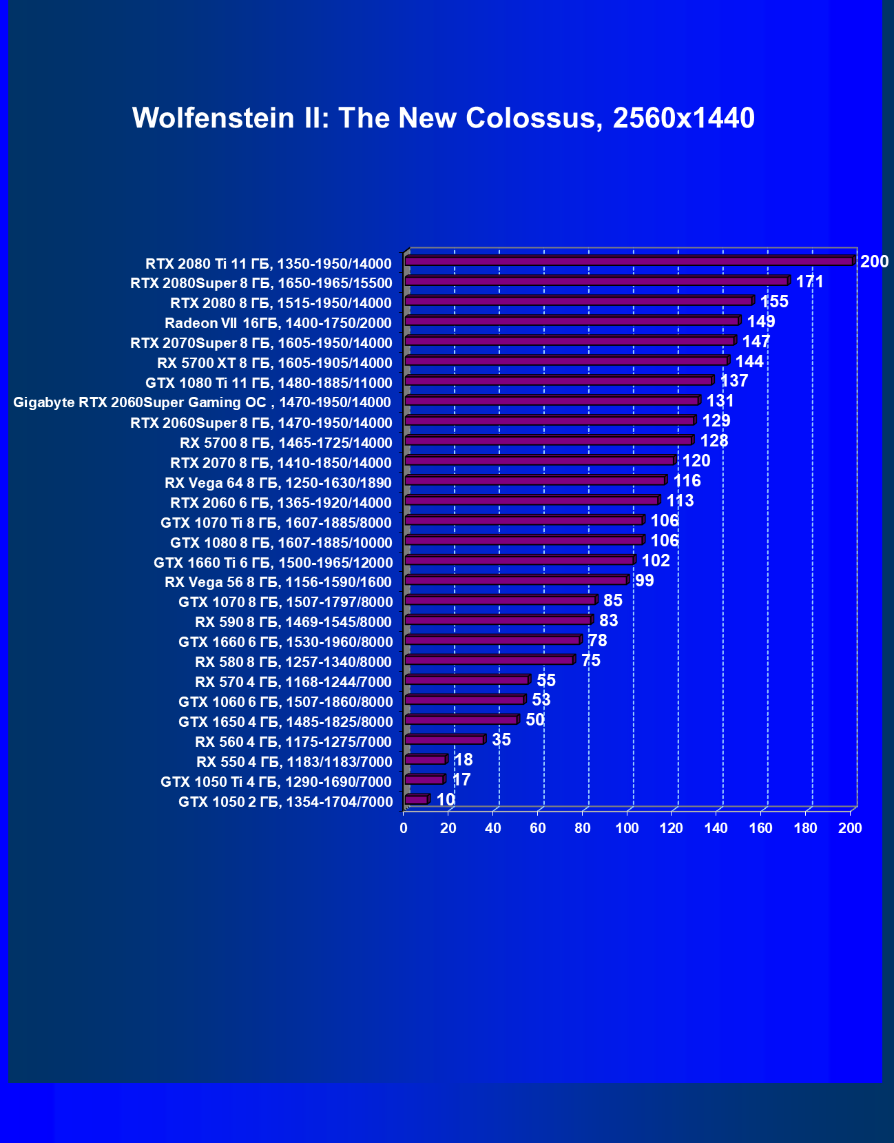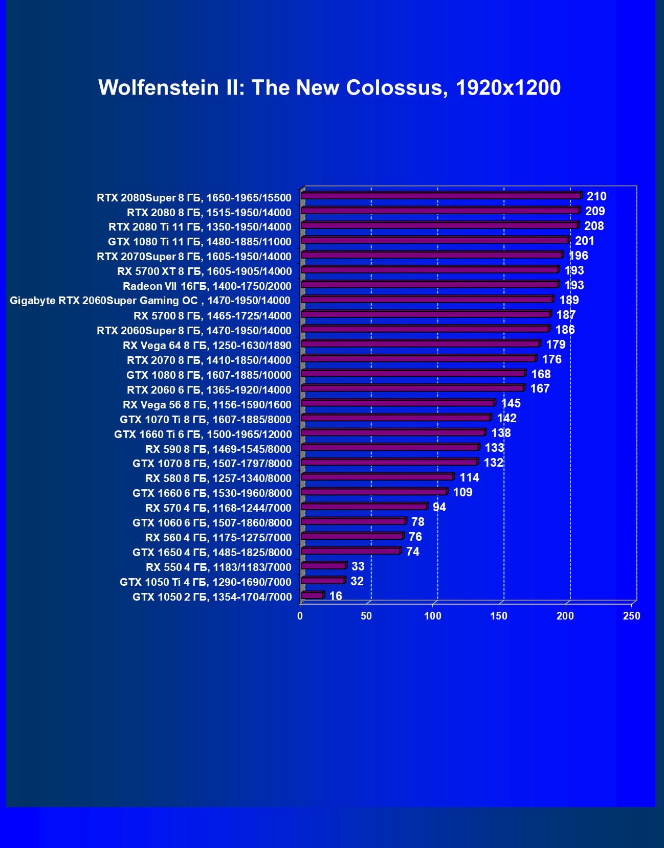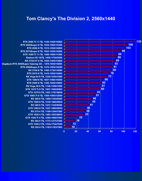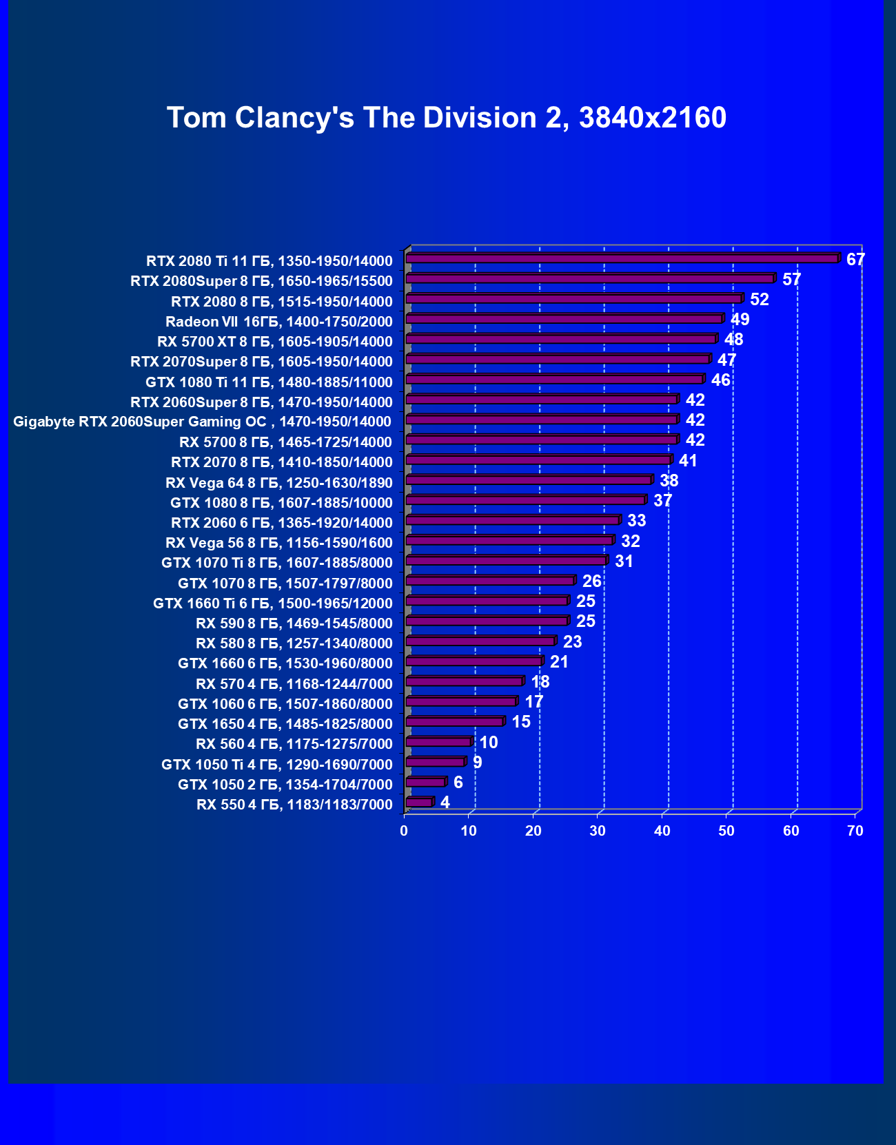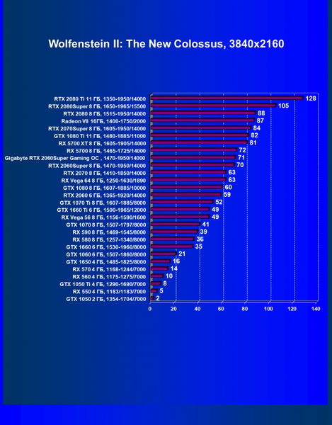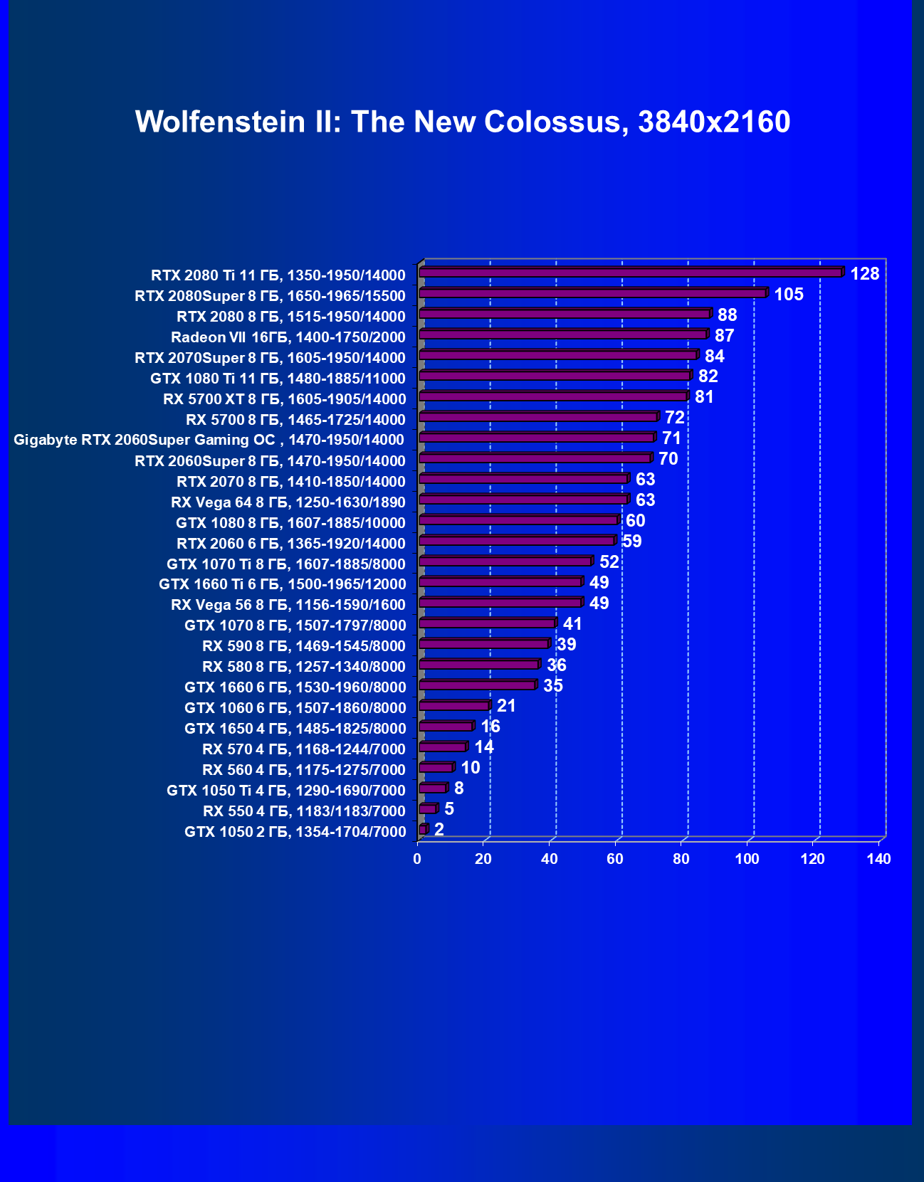 | 08 | RX 5700 XT 8 ГБ, 1605—1905/14000 | 300 | 860 | 28 700 |