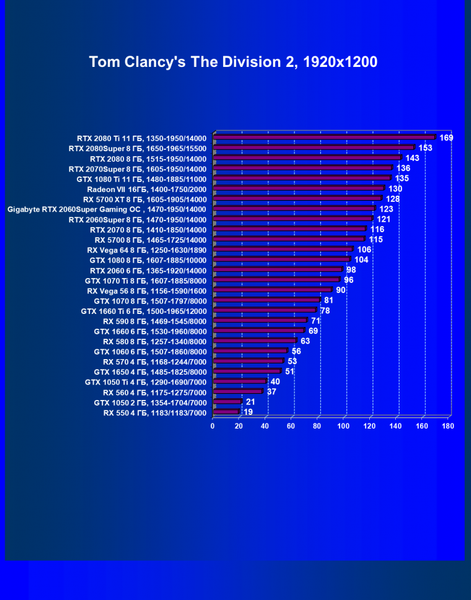 | 19 | GTX 1070 Ti 8 ГБ, 1607—1885/8000 | 242 | 630 | 26 000 |