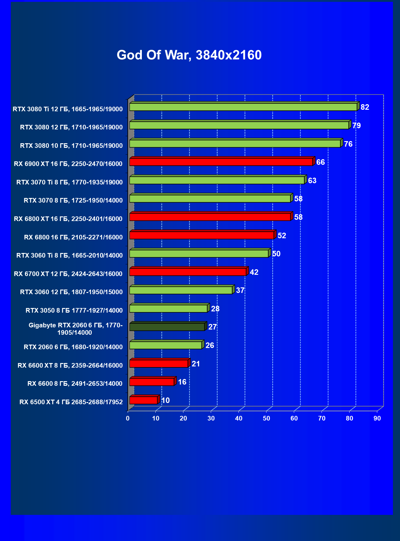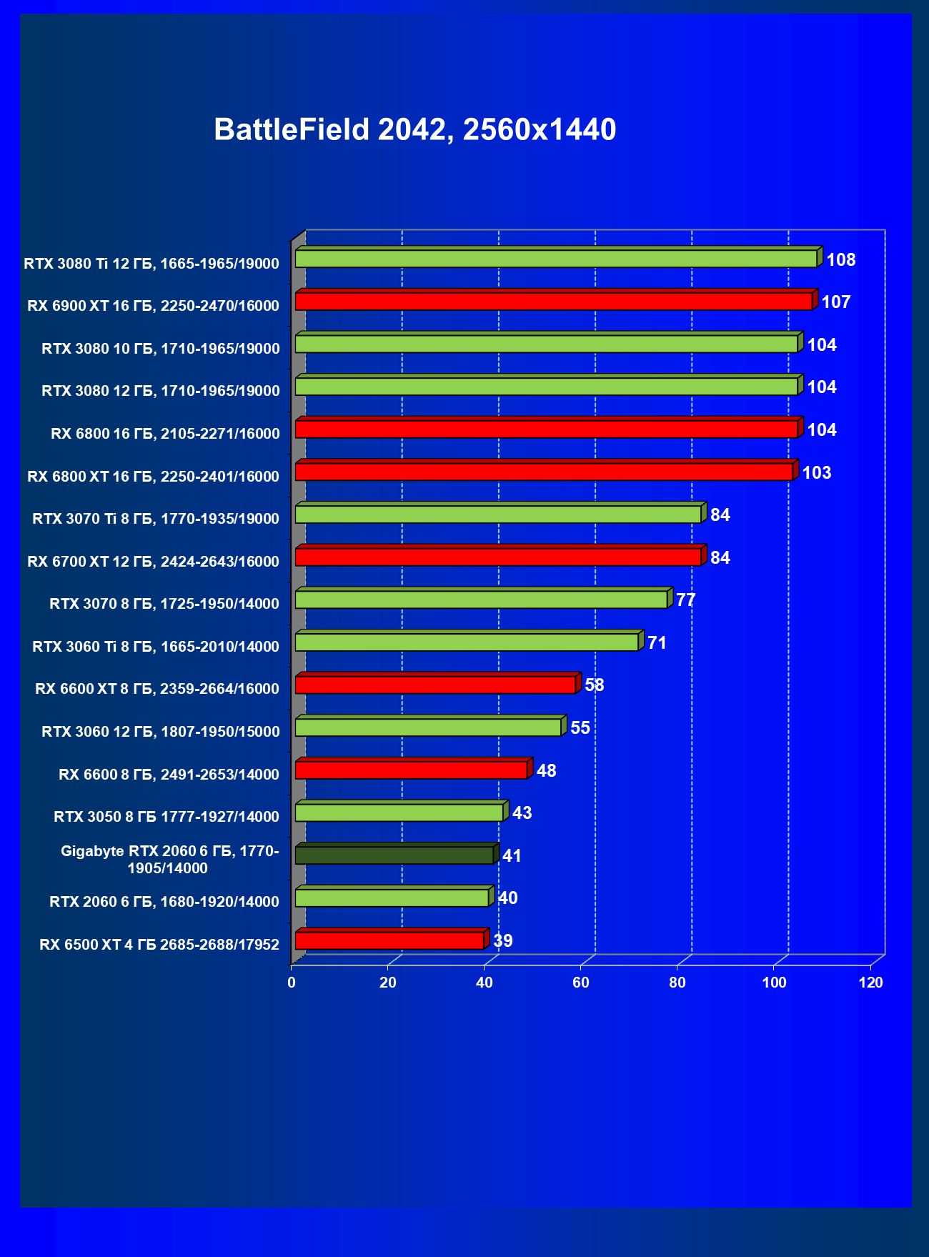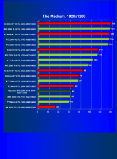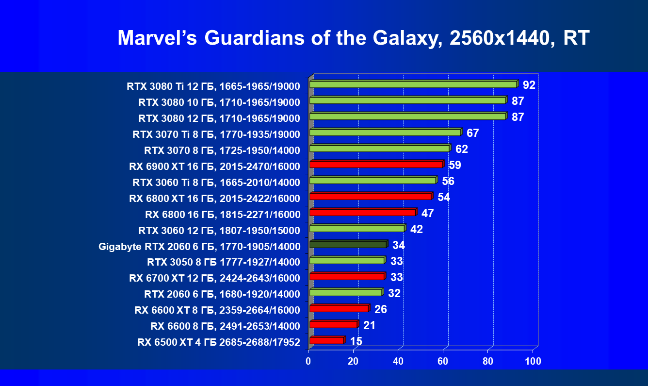 | 13 | RX 6600 (8 ГБ), 2491—2653/14000 | 180 | 31 | 59 000 |
