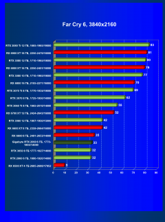 | 16 | RX 6600 (8 ГБ), 2491—2653/14000 | 240 | 41 | 59 000 |