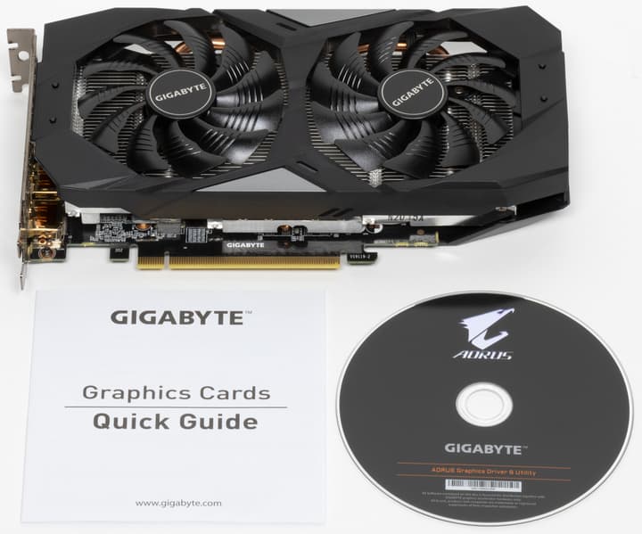 Комплект у Gigabyte GeForce RTX 2060 обыкновенный: краткая инструкция, диск с драйверами и сама карта. Коробка достаточно маленькая, внутри нее все укомплектовано надежно и аккуратно.
