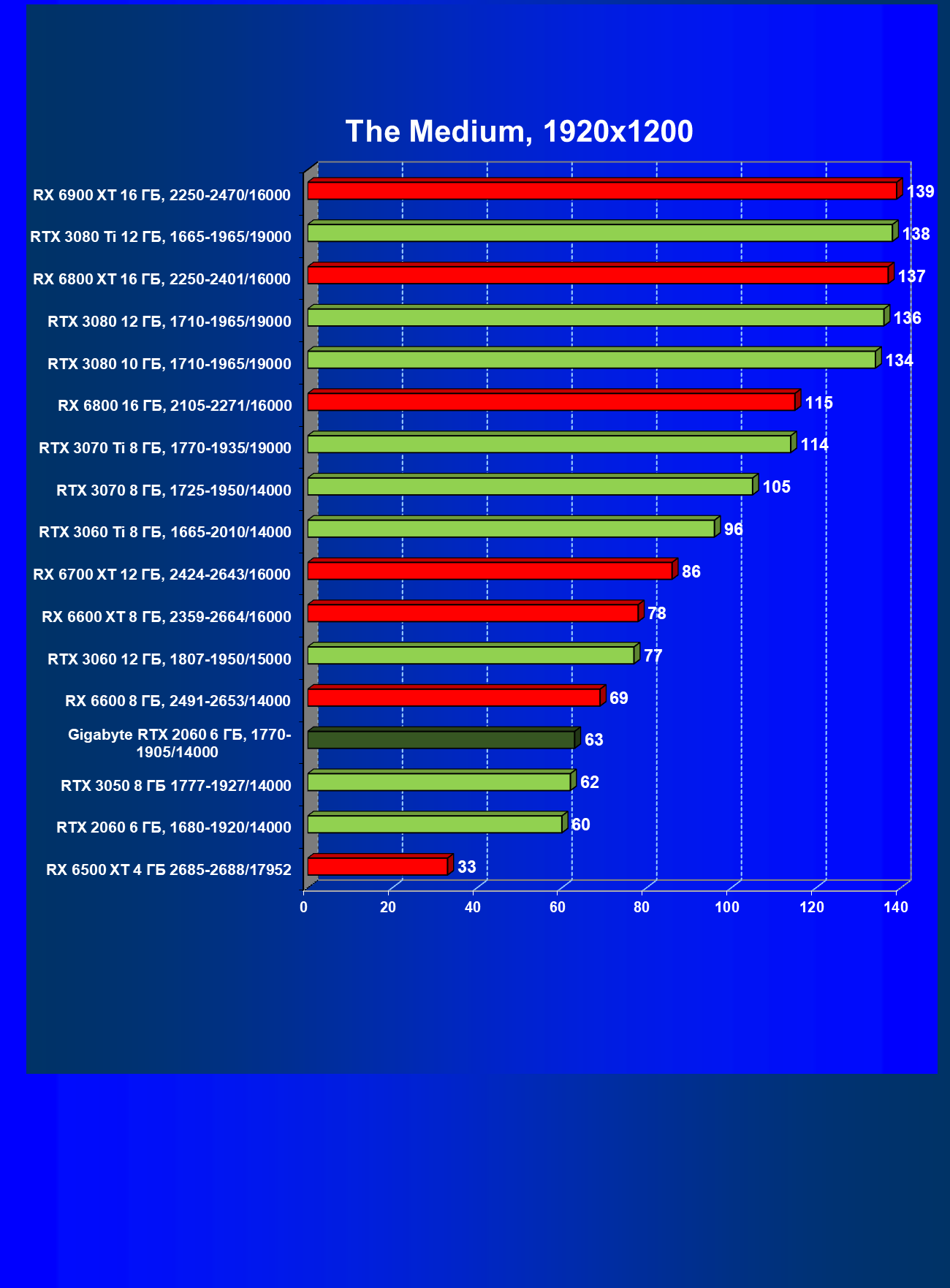 | 03 | RX 6600 XT (8 ГБ), 2359—2664/16000 | 32 | 210 | 66 000 |