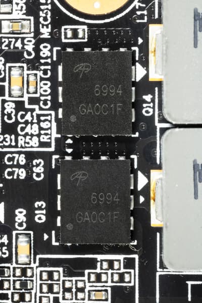 Фазы питания ядра памяти укомплектованы мосфетами Alpha&Omega AOZ5334 и 5251.