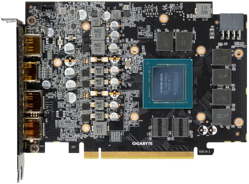 Карта имеет 6 ГБ памяти GDDR6 SDRAM, набранной 6 микросхемами Micron. Эффективная частота — 14 ГГц, ширина шины до GPU — 192 бита.
