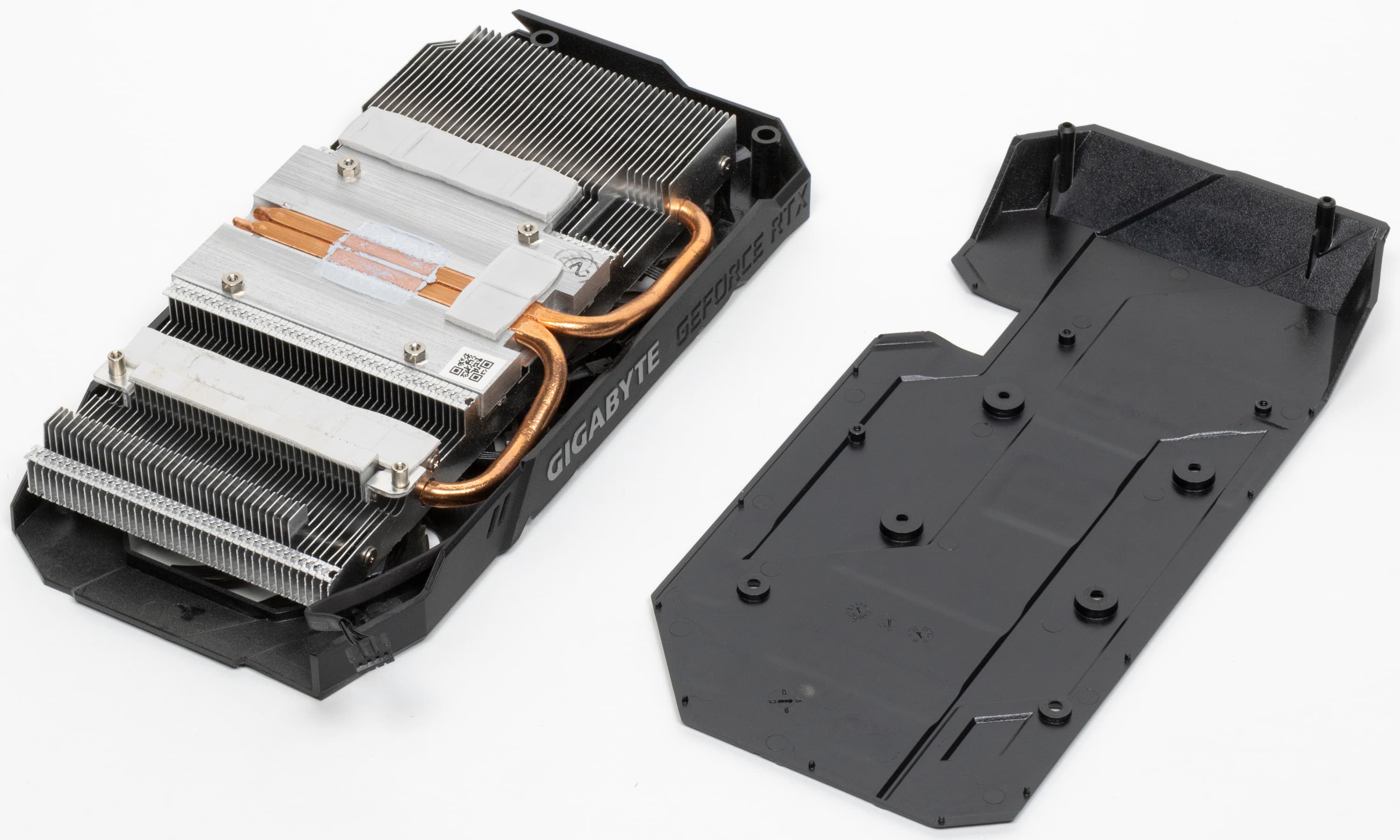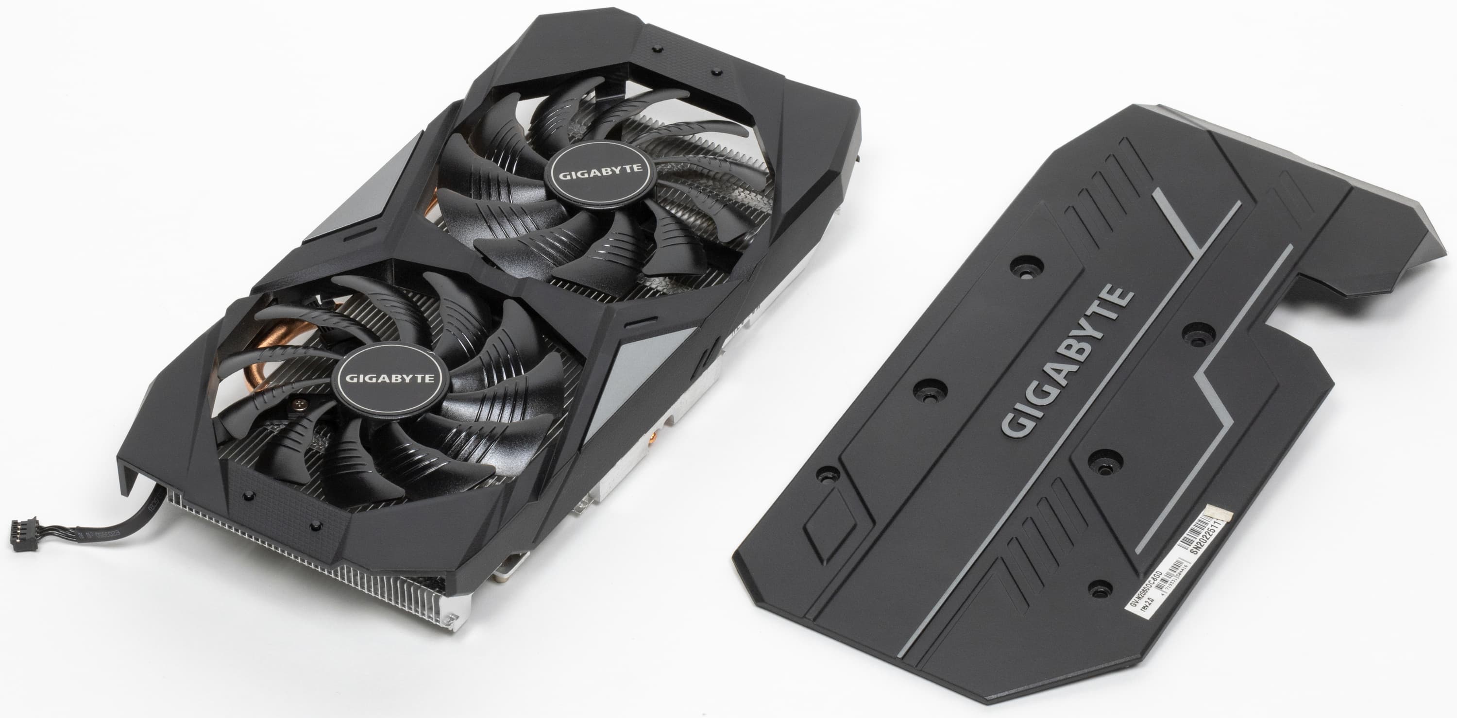 Поверх установлен кожух с двумя вентиляторами, работающими на одинаковой частоте вращения. С оборотной стороны карта прикрывается специальной пластиной, обеспечивающей жесткость конструкции и являющейся элементом дизайна.
