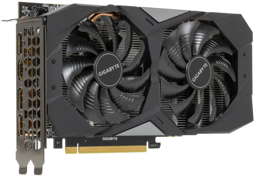 Видеокарта Gigabyte GeForce RTX 2060 Windforce OC 6G (6ГБ) на момент подготовки обзора имела стоимость в районе 55 тысяч рублей. У нее есть фабричный разгон, довольно компактные размеры, шумная, но адекватно охлаждающая СО, и в целом она очень неплоха на фоне конкурентов. Карта относится к семейству GeForce RTX, так что поддерживает трассировку лучей, DLSS и другие интересные особенности современных видеокарт Nvidia. Когда-то видеокарты GeForce RTX 2060 считались одними из самых «народных».