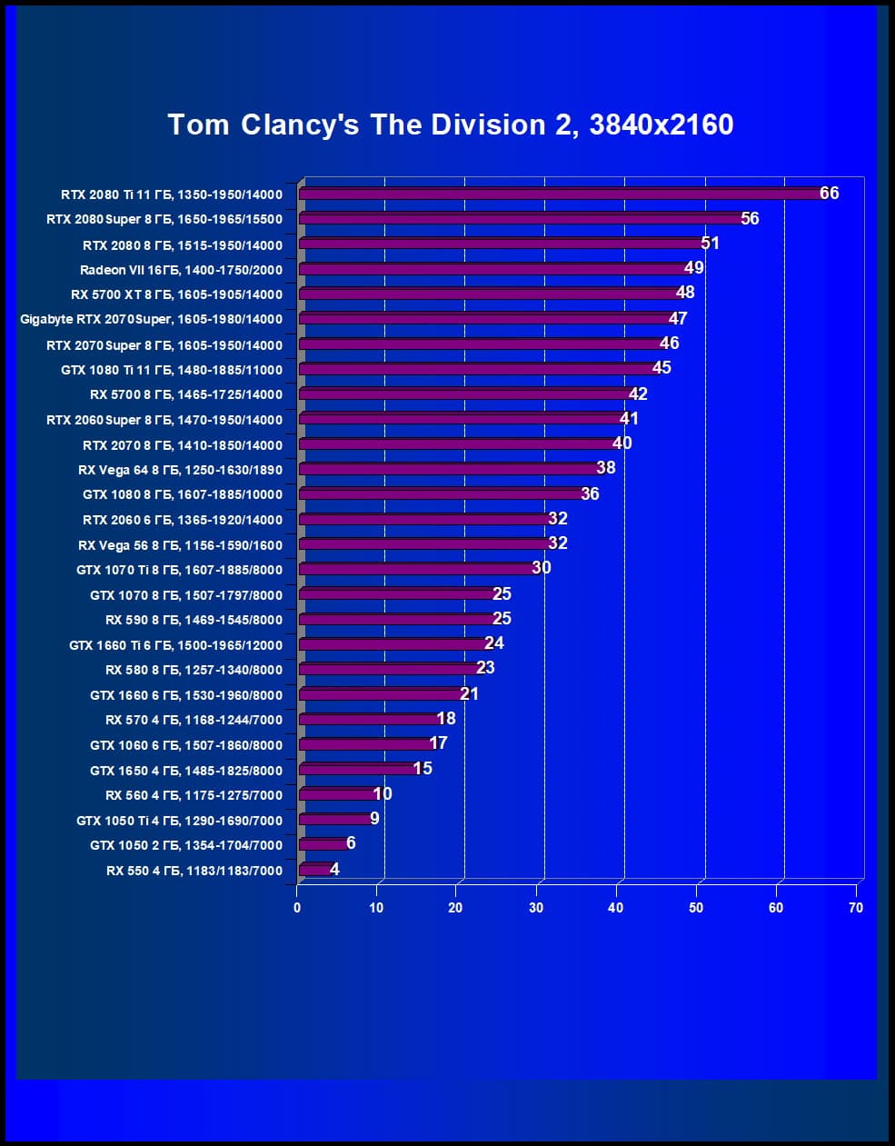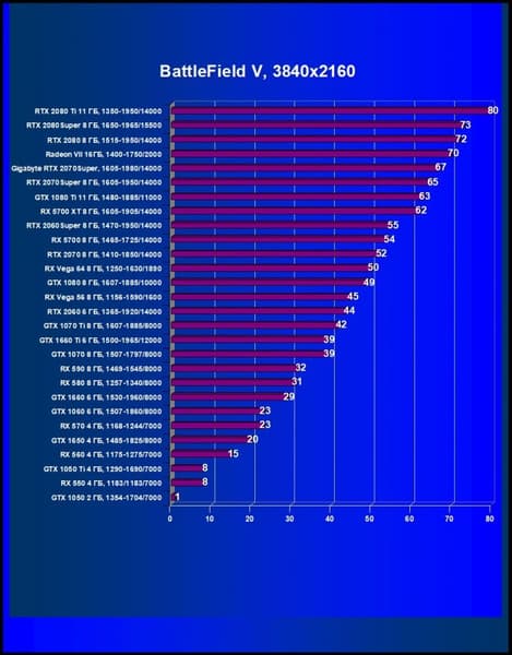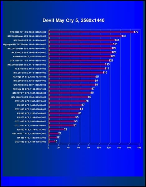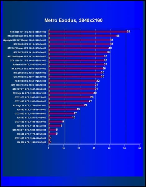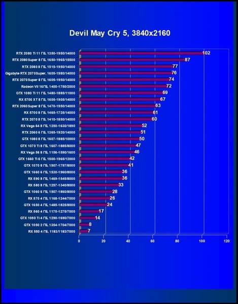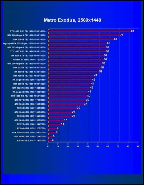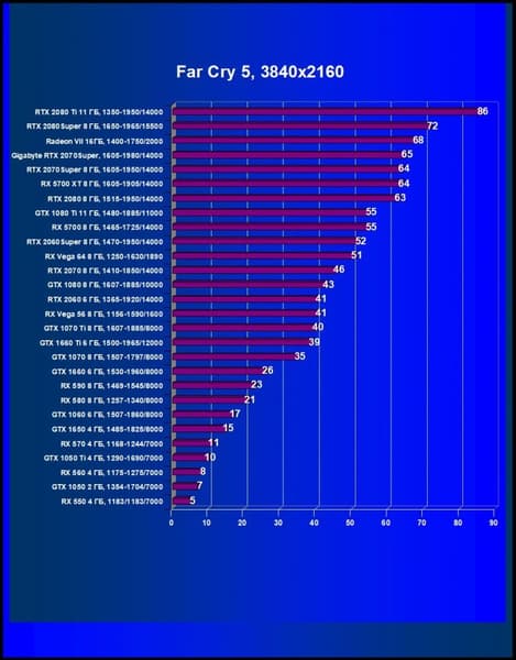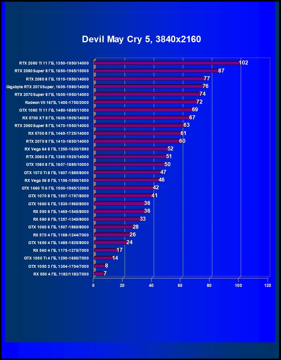 | 07 | RX 5700 XT 8 ГБ, 1605—1905/14000 | 860 | 261 | 33 000 |