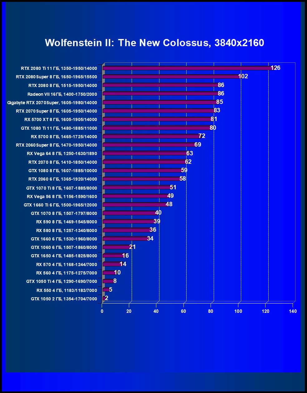 | 03 | RX 5700 XT 8 ГБ, 1605—1905/14000 | 236 | 778 | 33 000 |