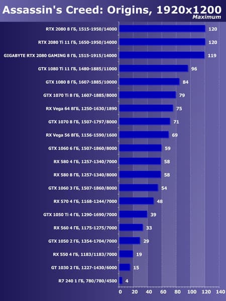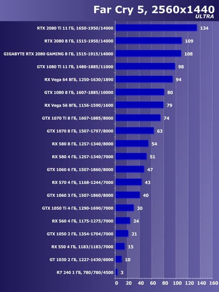 | 11 | Gigabyte RTX 2080 Gaming OC 8 ГБ, 1515—1915/14000 | 774 | 4580 | 59 200 |