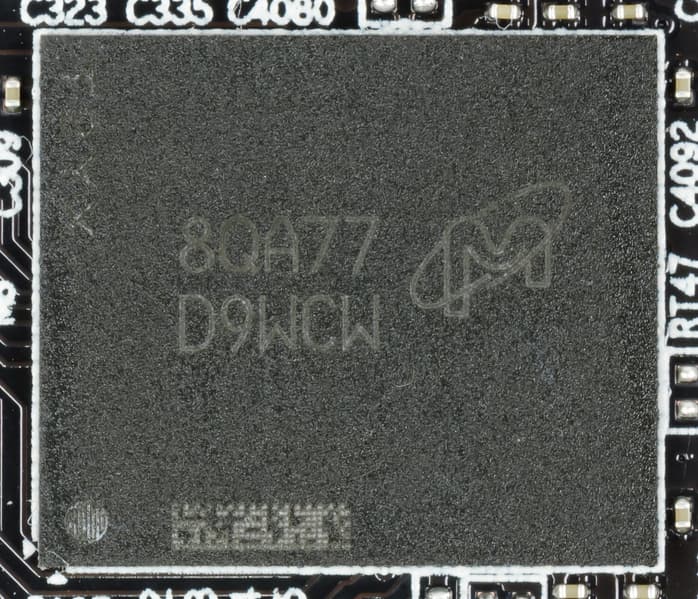 Карта имеет 11 ГБ памяти GDDR6 SDRAM, размещенной в 11 микросхемах по 8 Гбит на лицевой стороне PCB. Микросхемы памяти Micron (GDDR6) рассчитаны на номинальную частоту работы в 3500 (14000) МГц