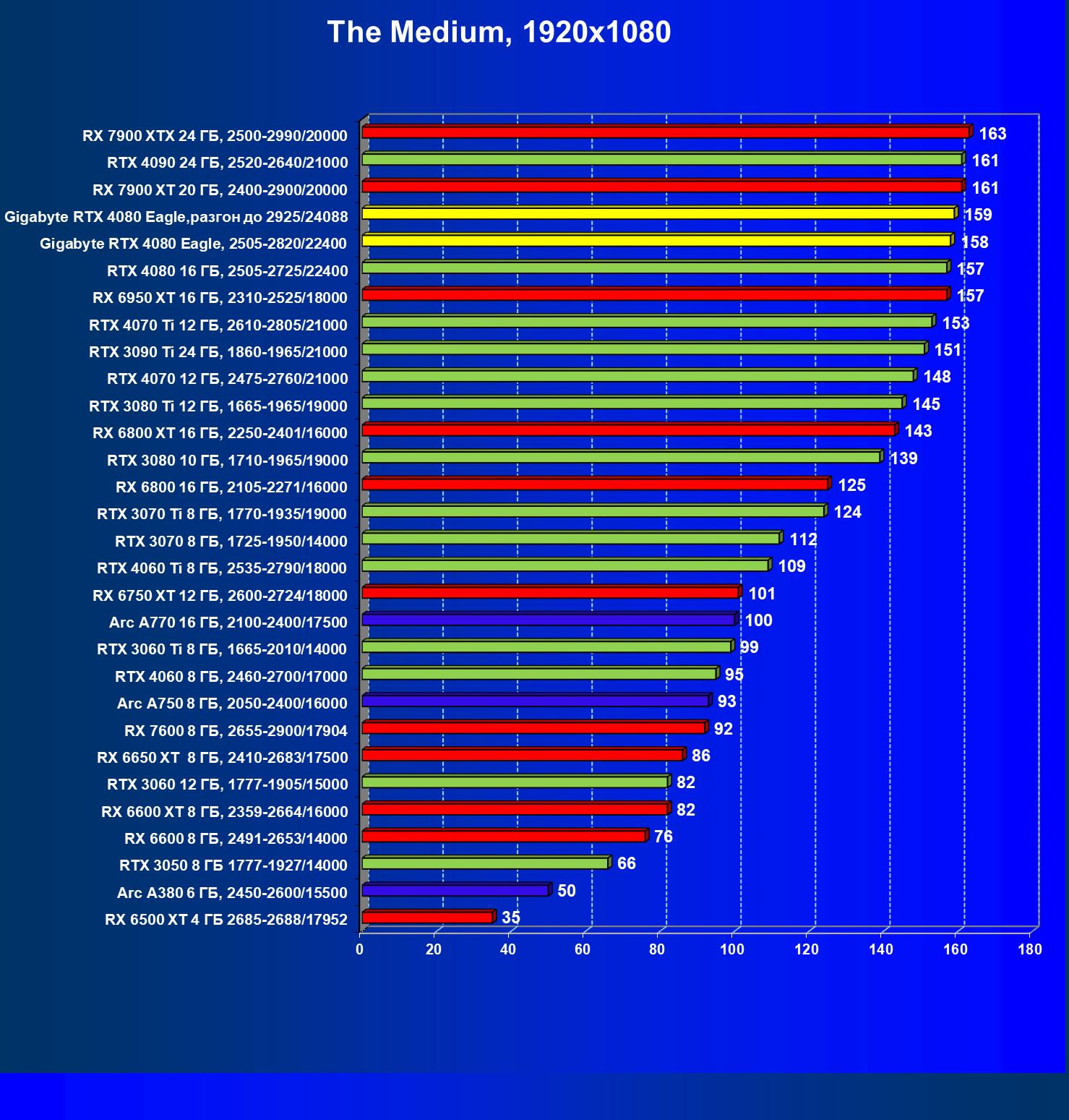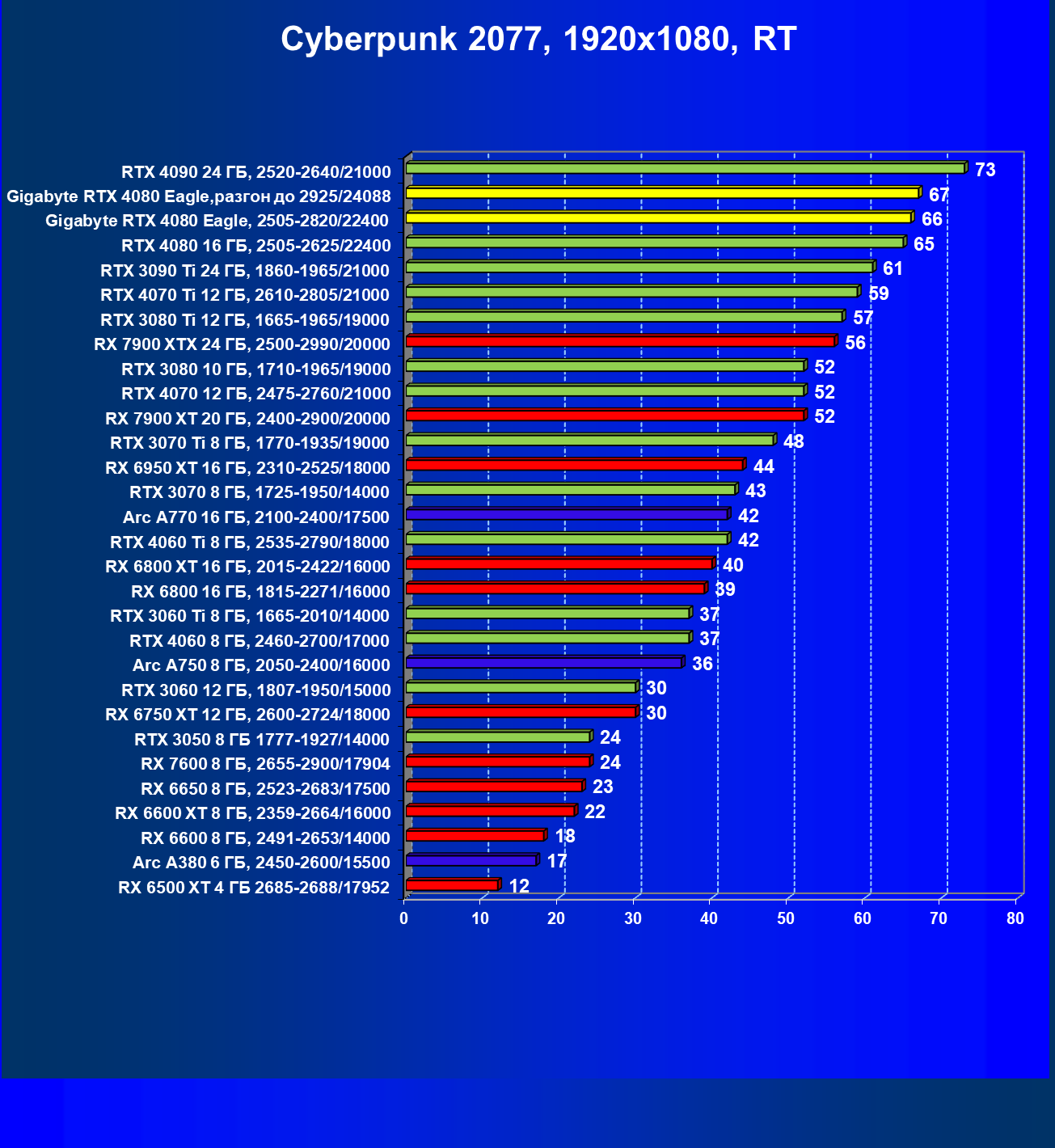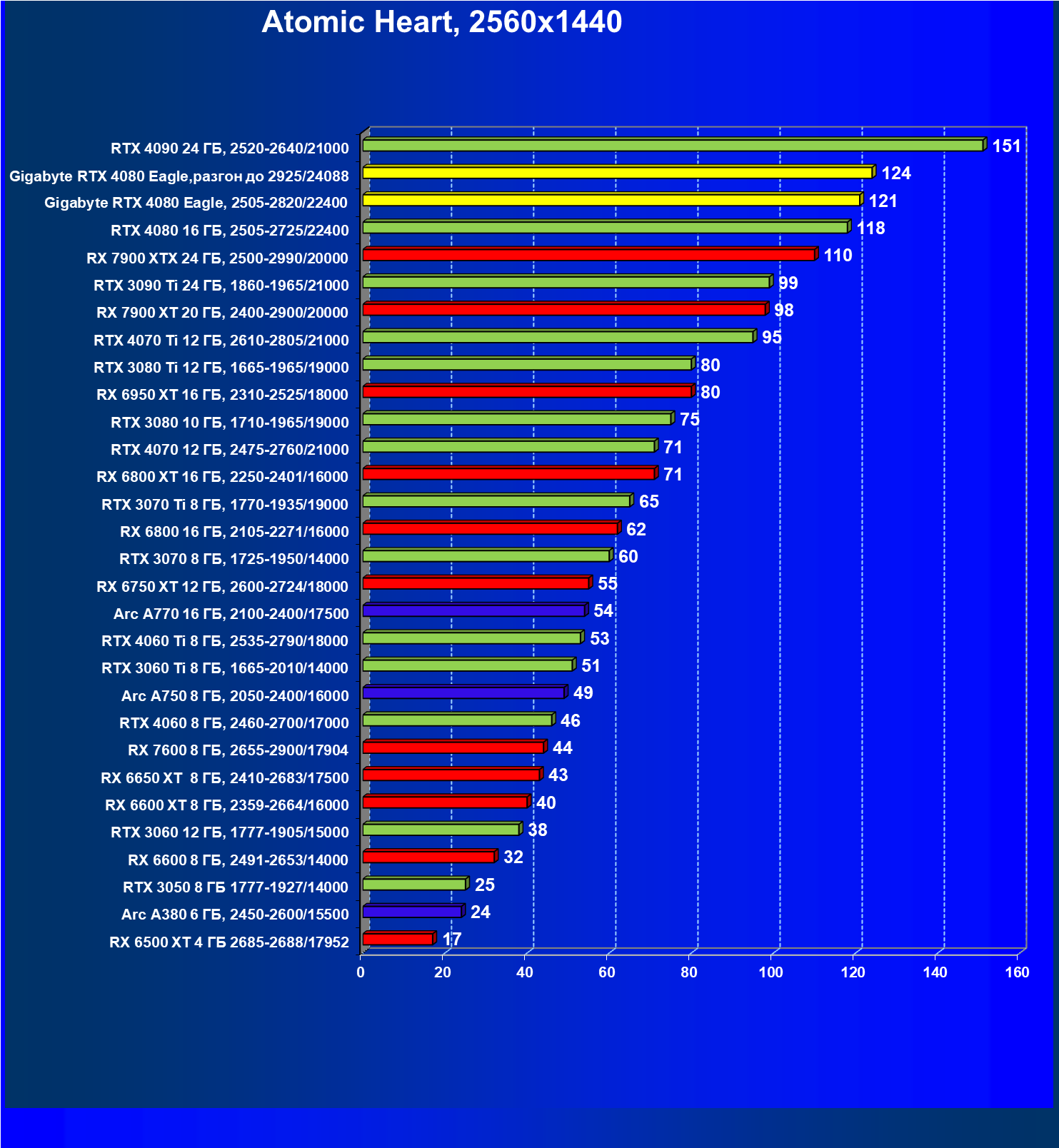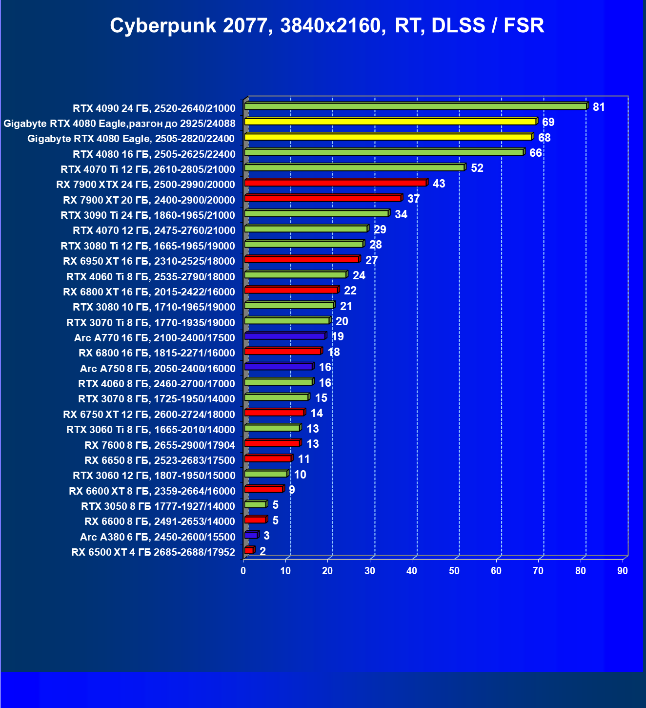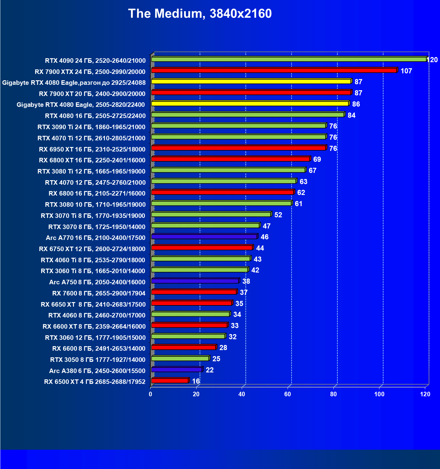 | 03 | Gigabyte RTX 4080 Eagle, 2505—2820/22400 | 1939 | 199 | 97 500 |