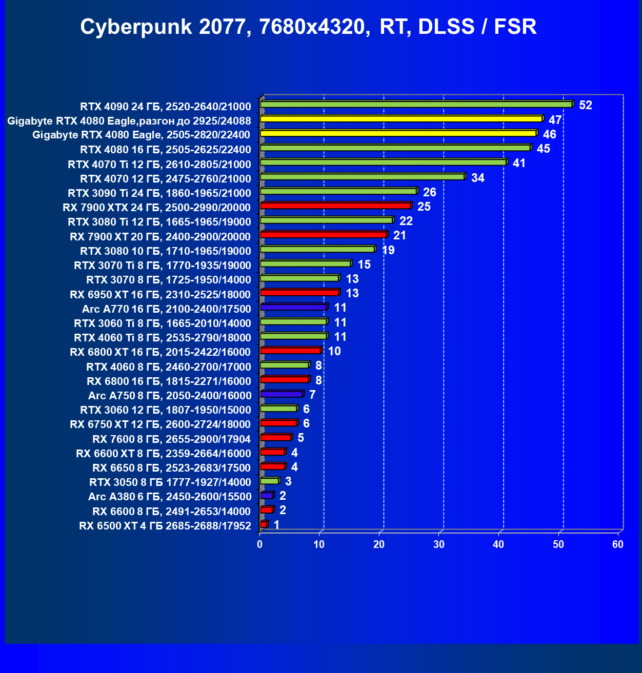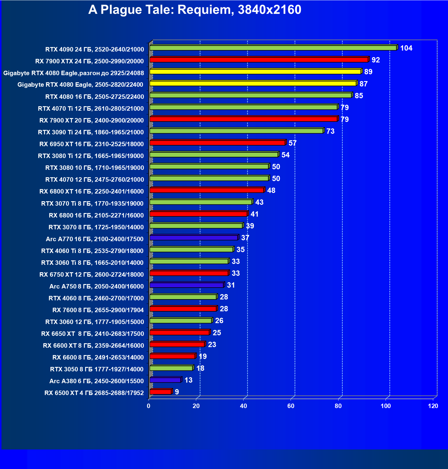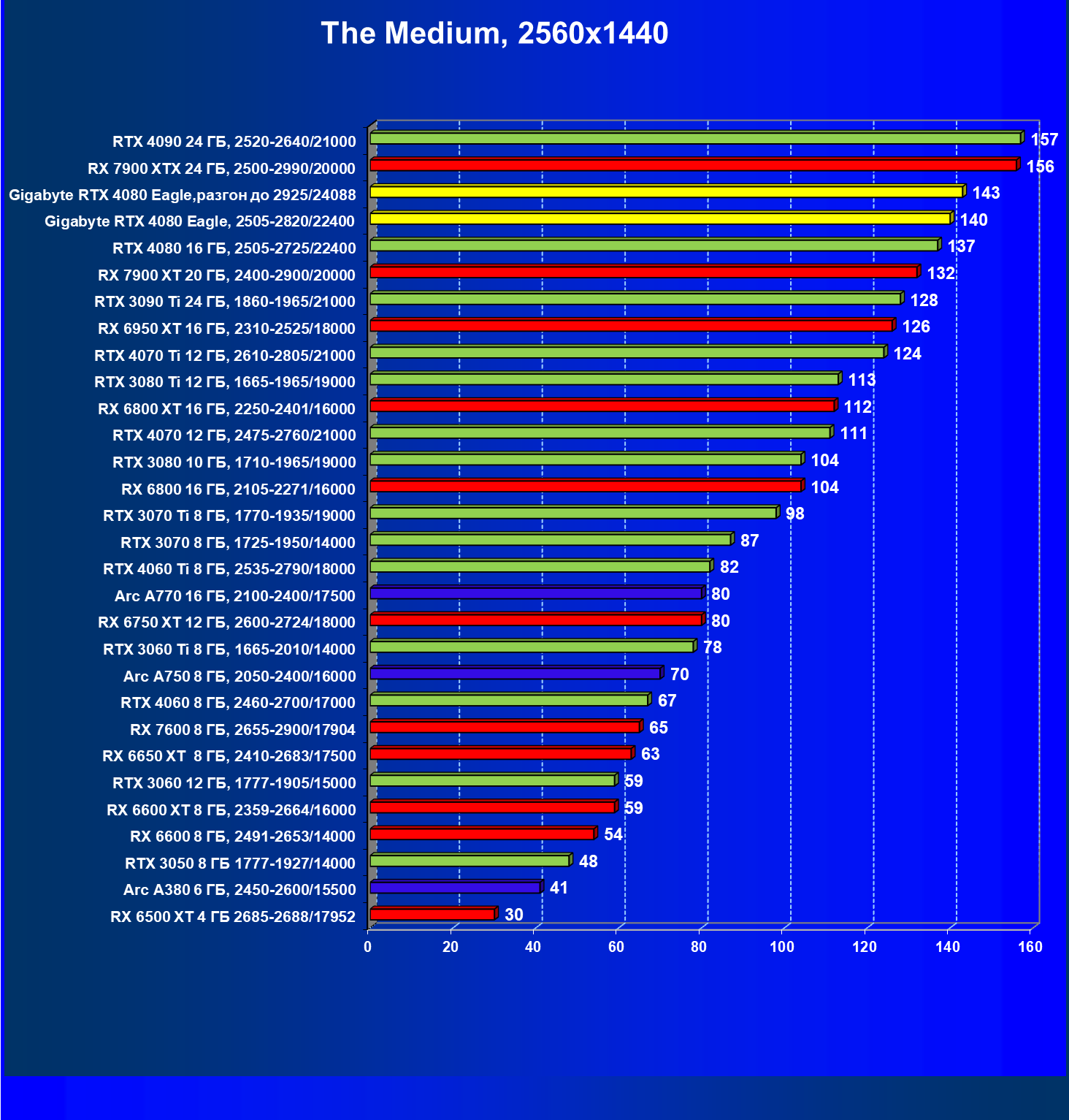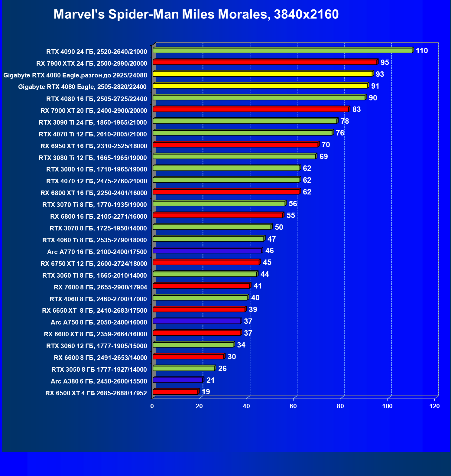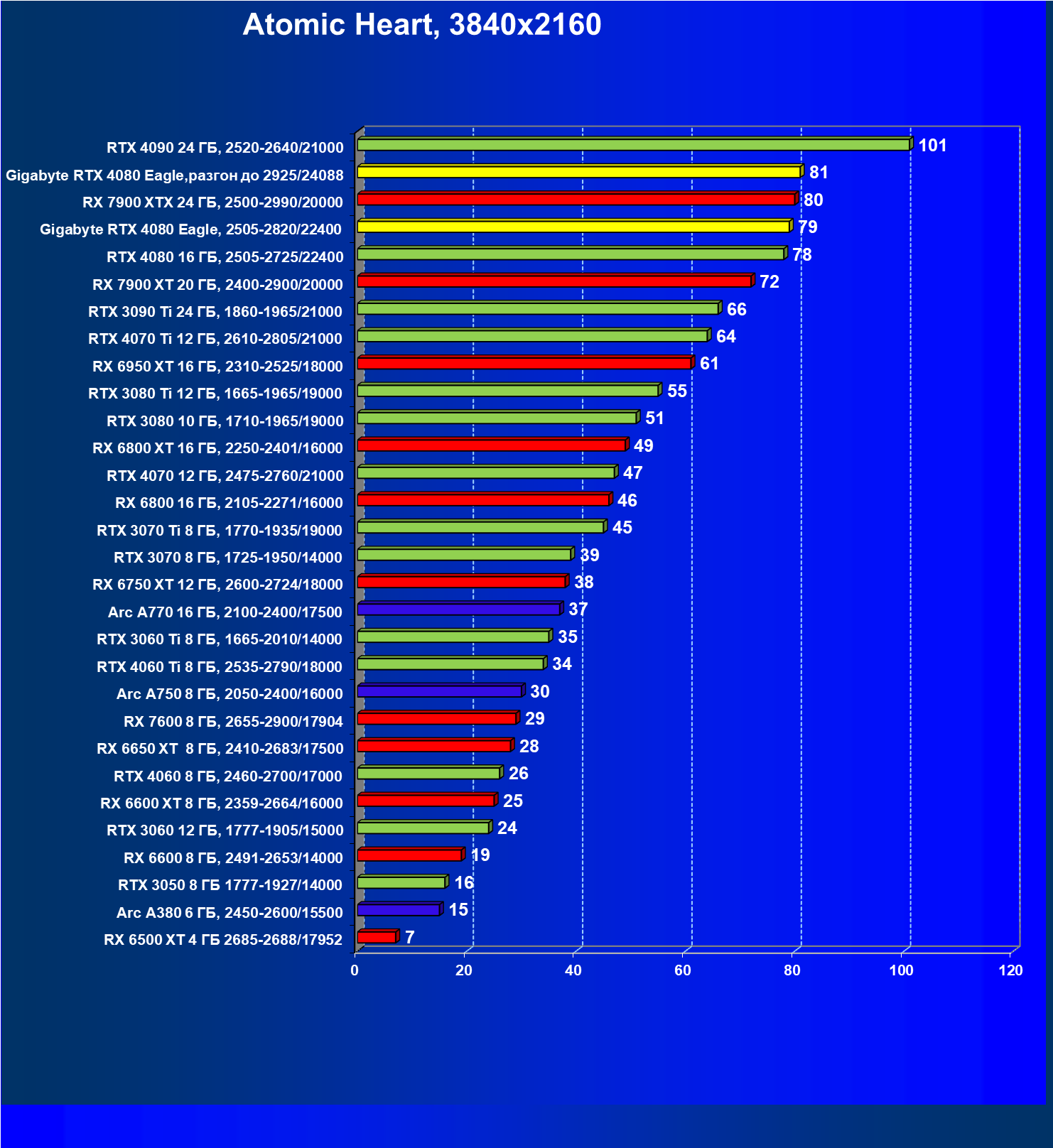 | 03 | Gigabyte RTX 4080 Eagle, 2505—2820/22400 | 1939 | 199 | 97 500 |