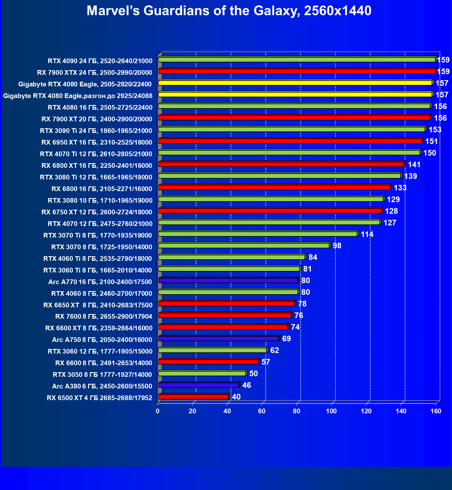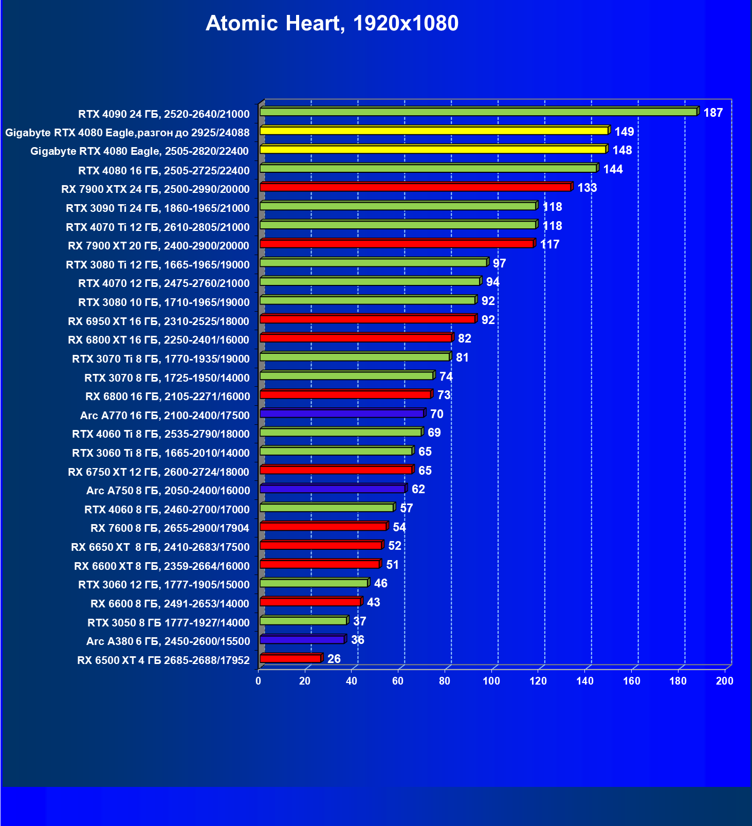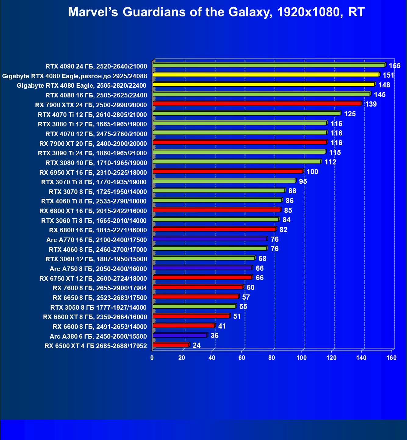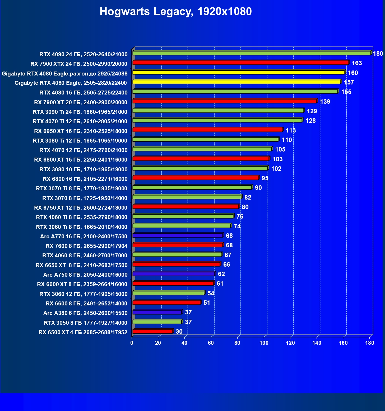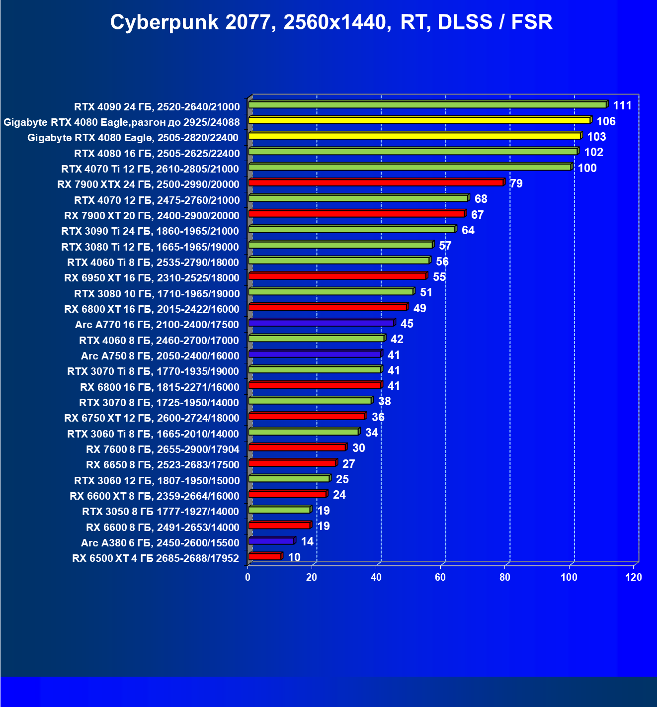| 03 | Gigabyte RTX 4080 Eagle, 2505—2820/22400 | 1939 | 199 | 97 500 |